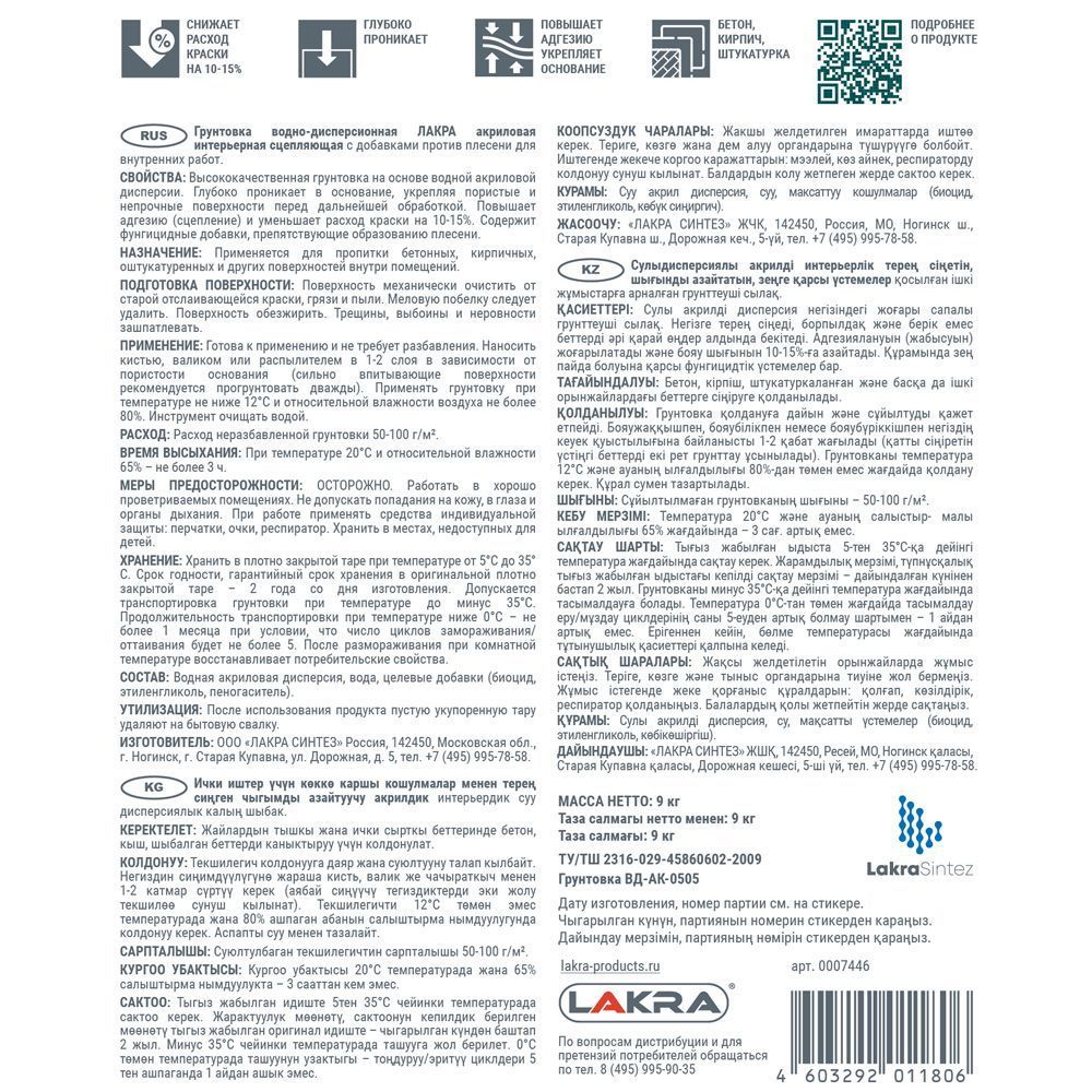 - Высококачественная грунтовка на основе водной акриловой дисперсии;