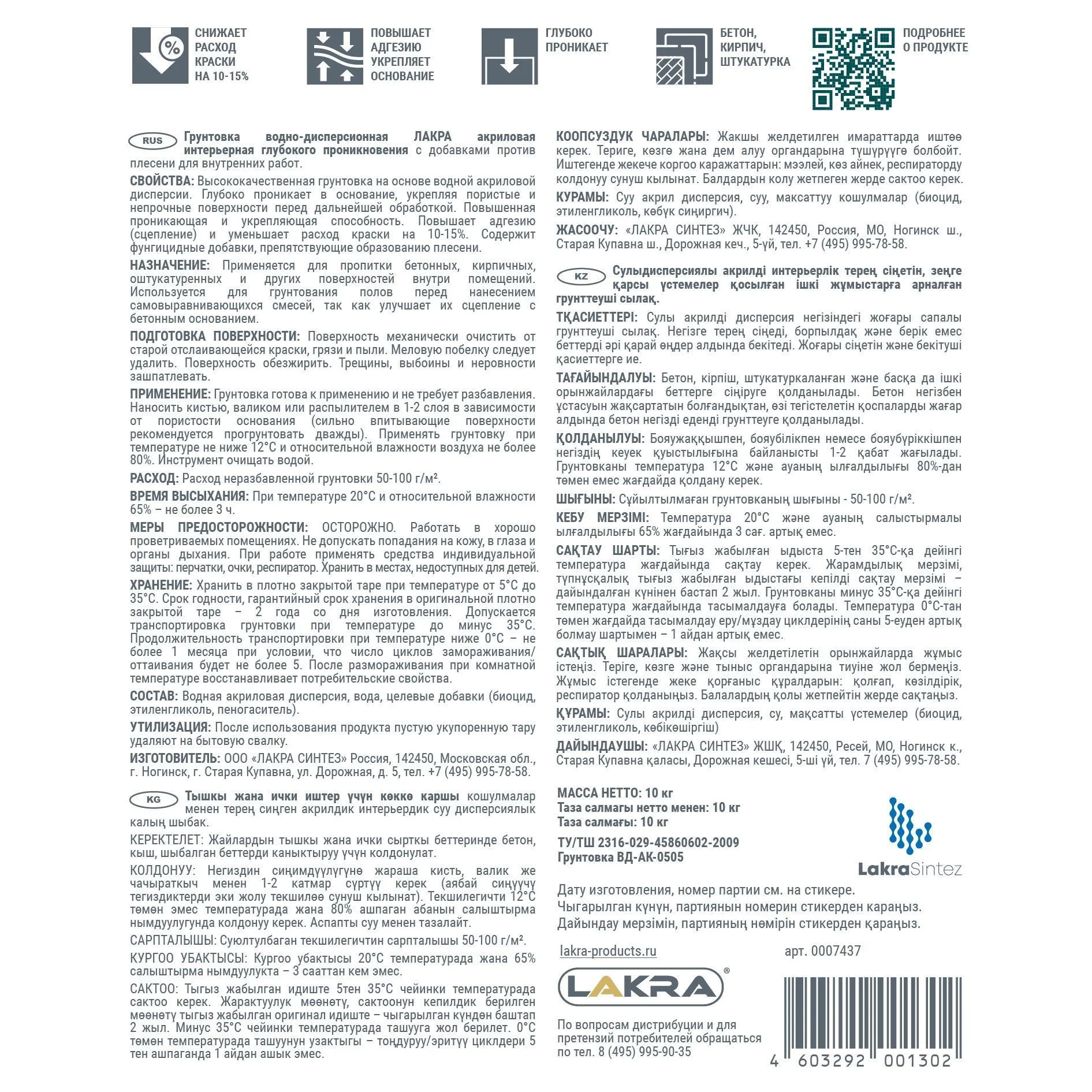 Грунт интерьерный глубокого проникновения против плесени Лакра 10кг цена - купить в Барнауле, Бийске. Размеры, характеристики, фото в интернет-магазине.