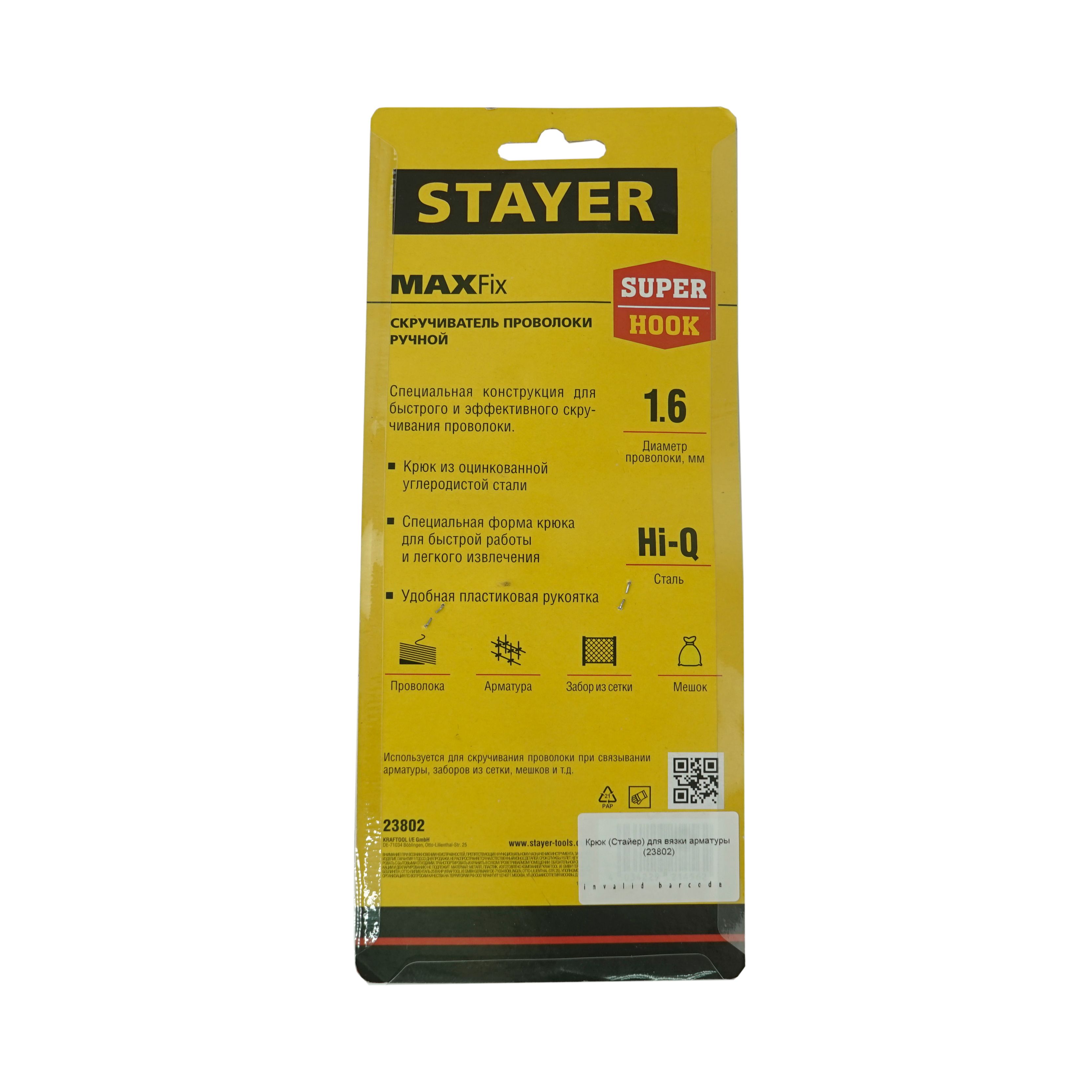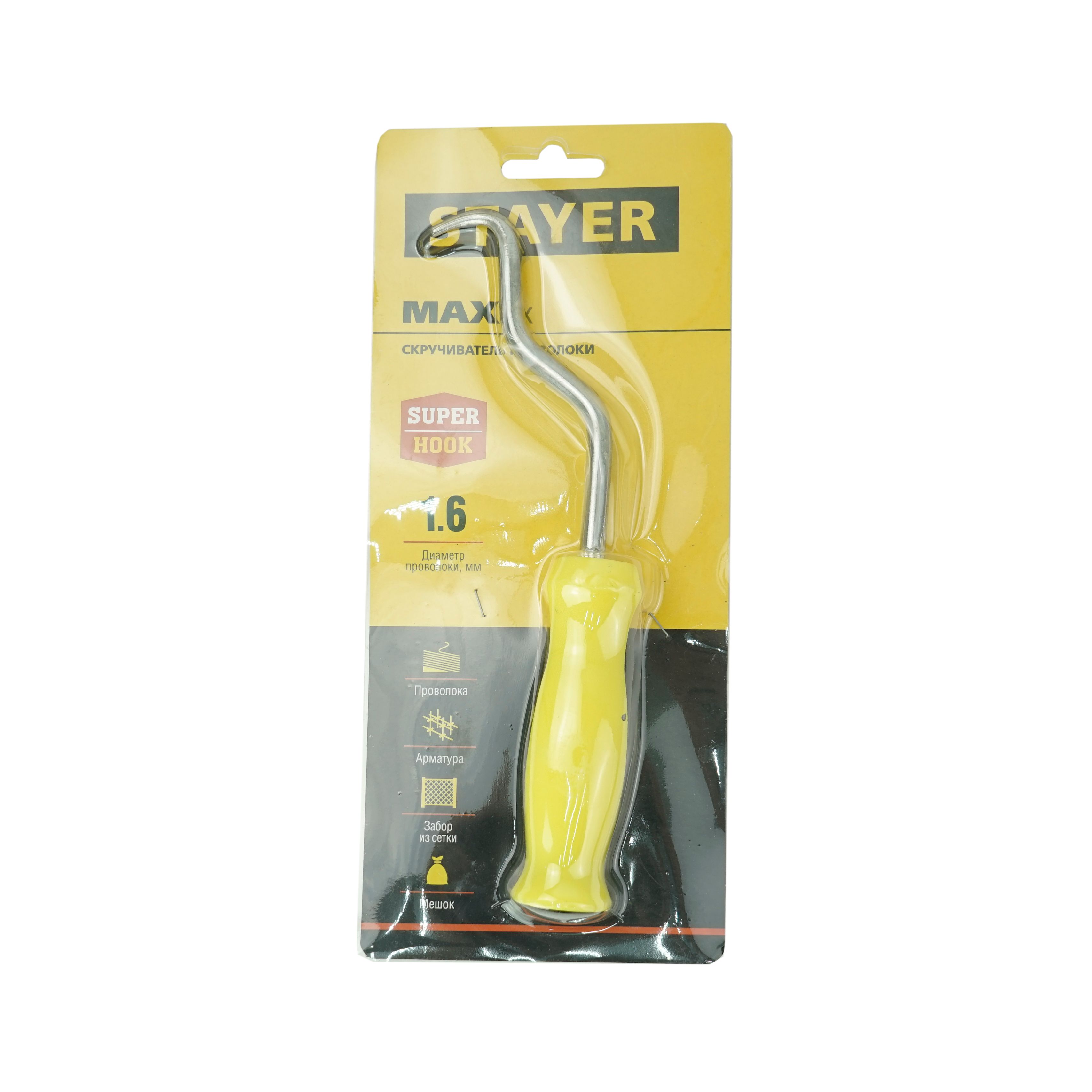 Специальная конструкция для быстрого и эффективного скручивания проволоки при выполнении крепежных работ. Крюк из оцинкованной стали длиной 215мм.