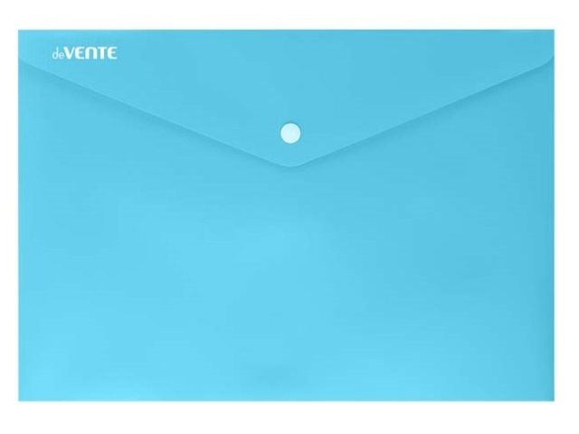 Папка-конверт на кнопке формата А4 из высококачественного прозрачного пластика с текстурой поверхности, на которой не видно отпечатков пальцев и мелких царапин.