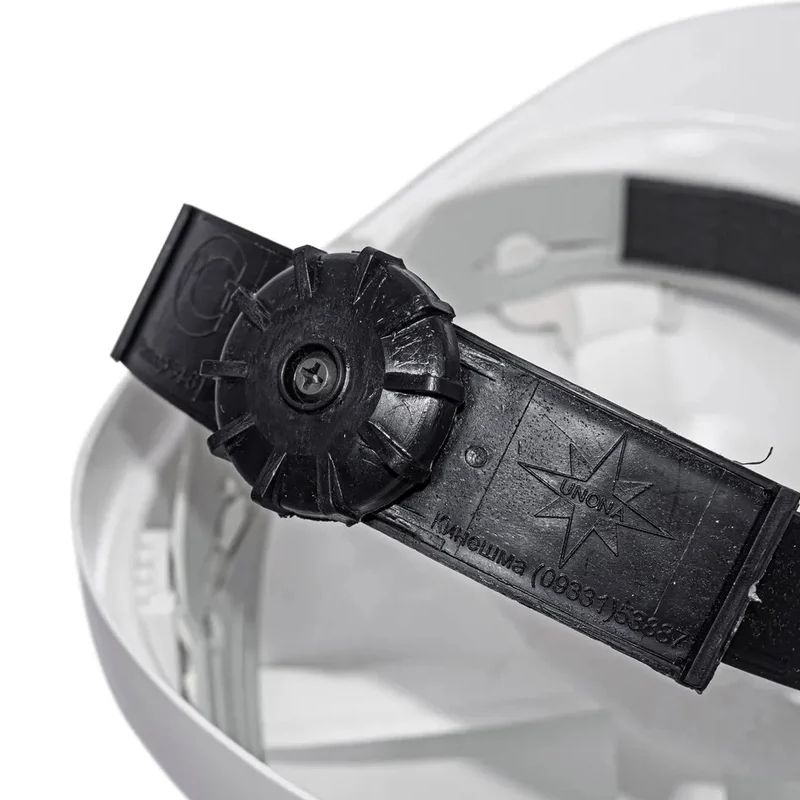 - Оснащена пластиковым оголовьем с 6 точками крепления, храповиком для плавного изменения размера оголовья, подбородочным ремнём и сточным желобом;
