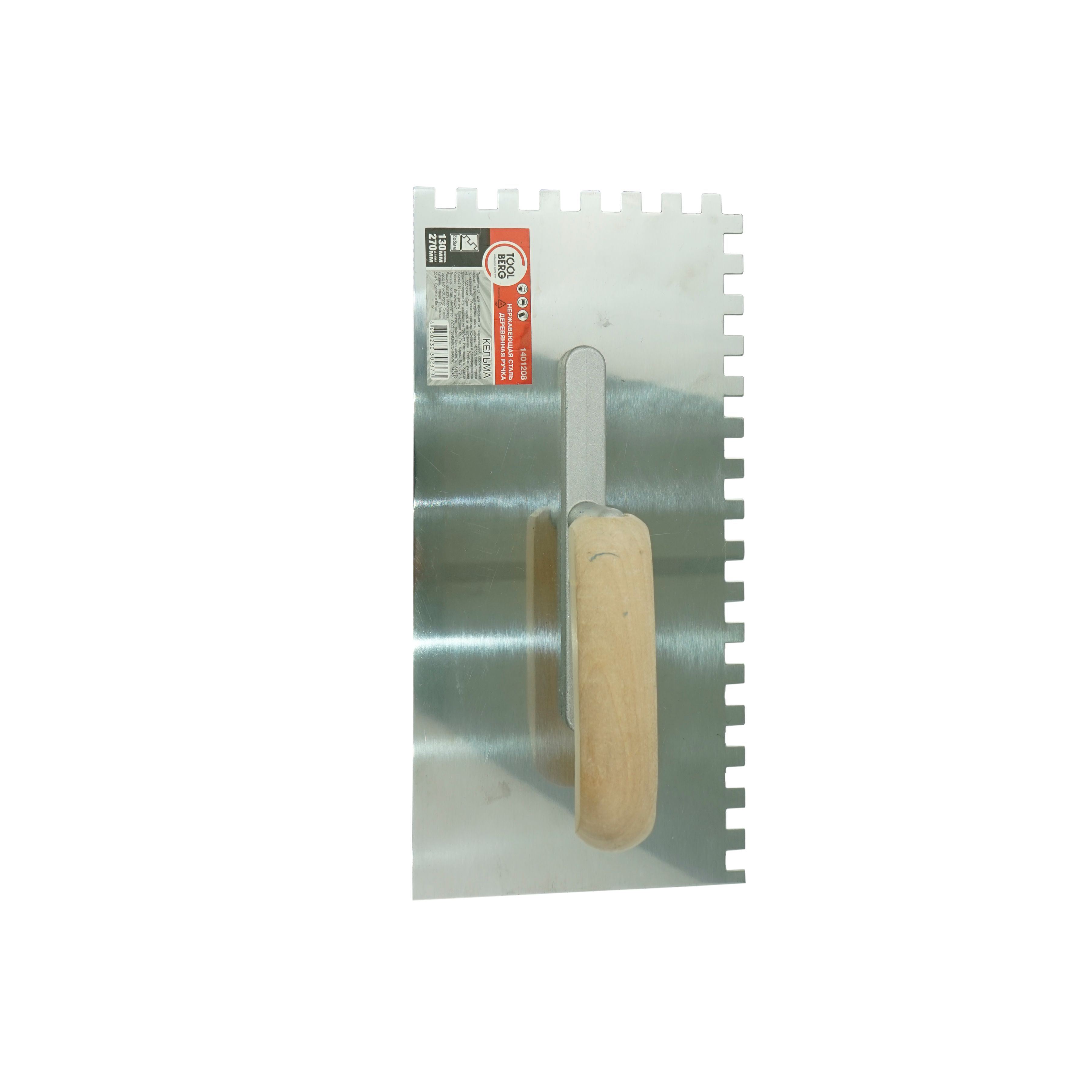 Кельма (ПиКьюТулс) нержавеющая сталь, деревянная ручка, 130х270мм, зуб 8х8мм