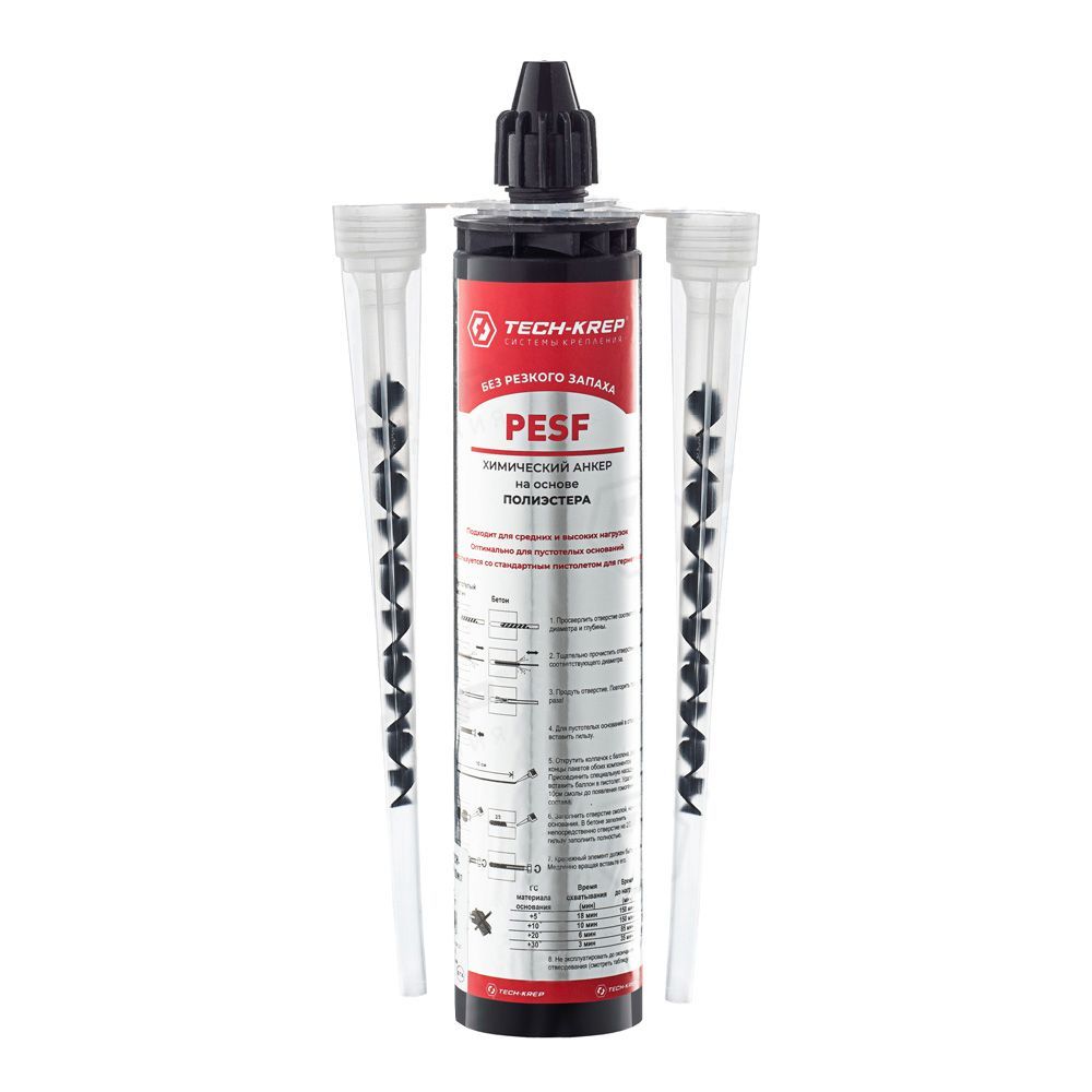 Химический анкер Tech-KREP PESF — двухкомпонентный химический состав на основе синтетической быстротвердеющей полиэстерной смолы, не содержащий стирол и не имеющий запаха.