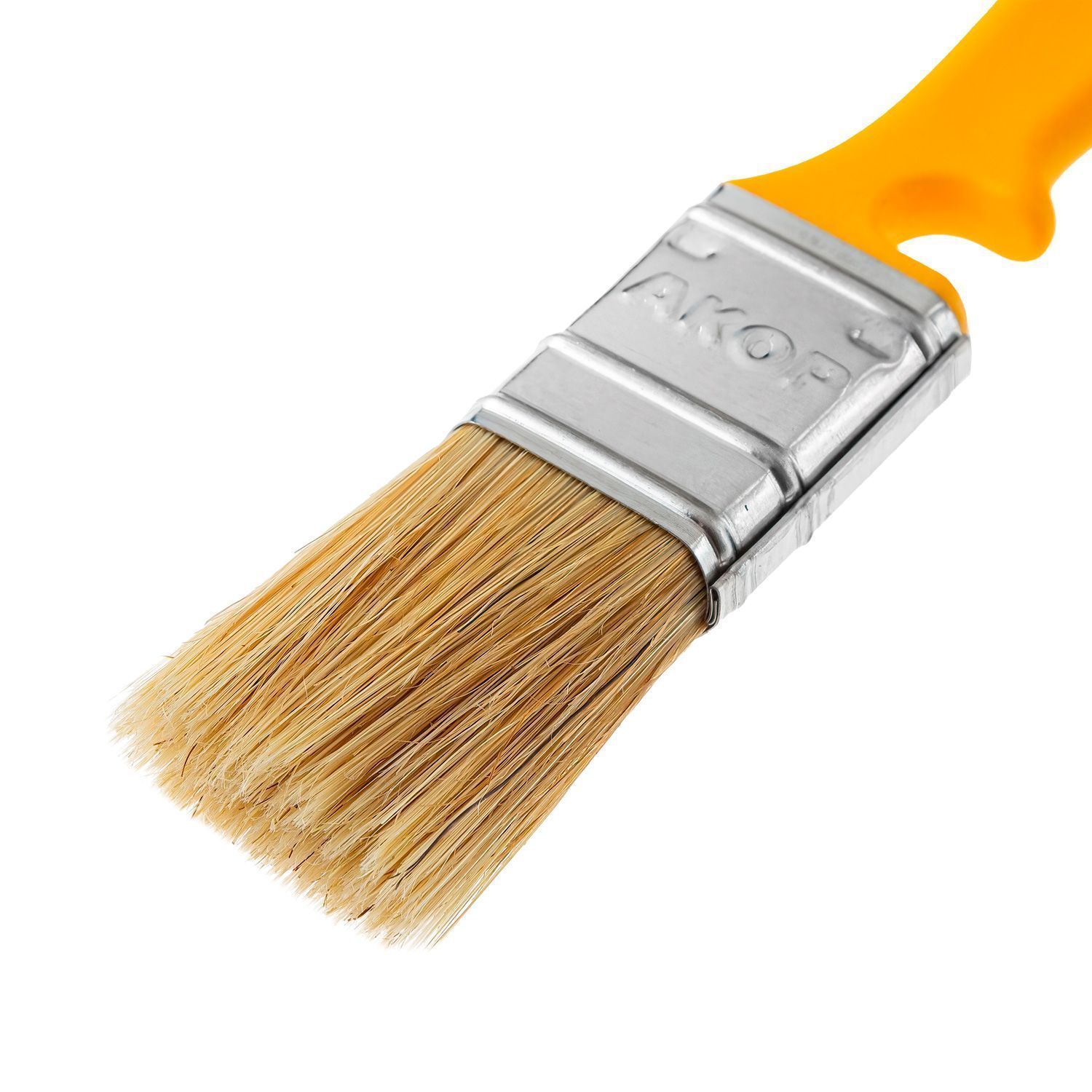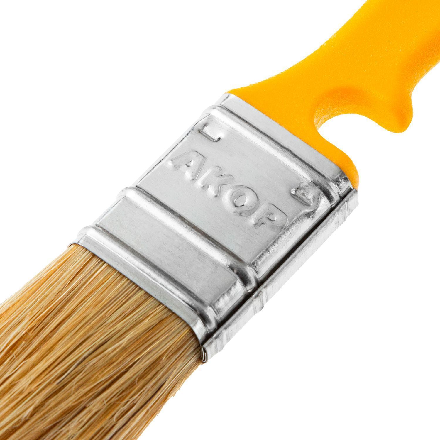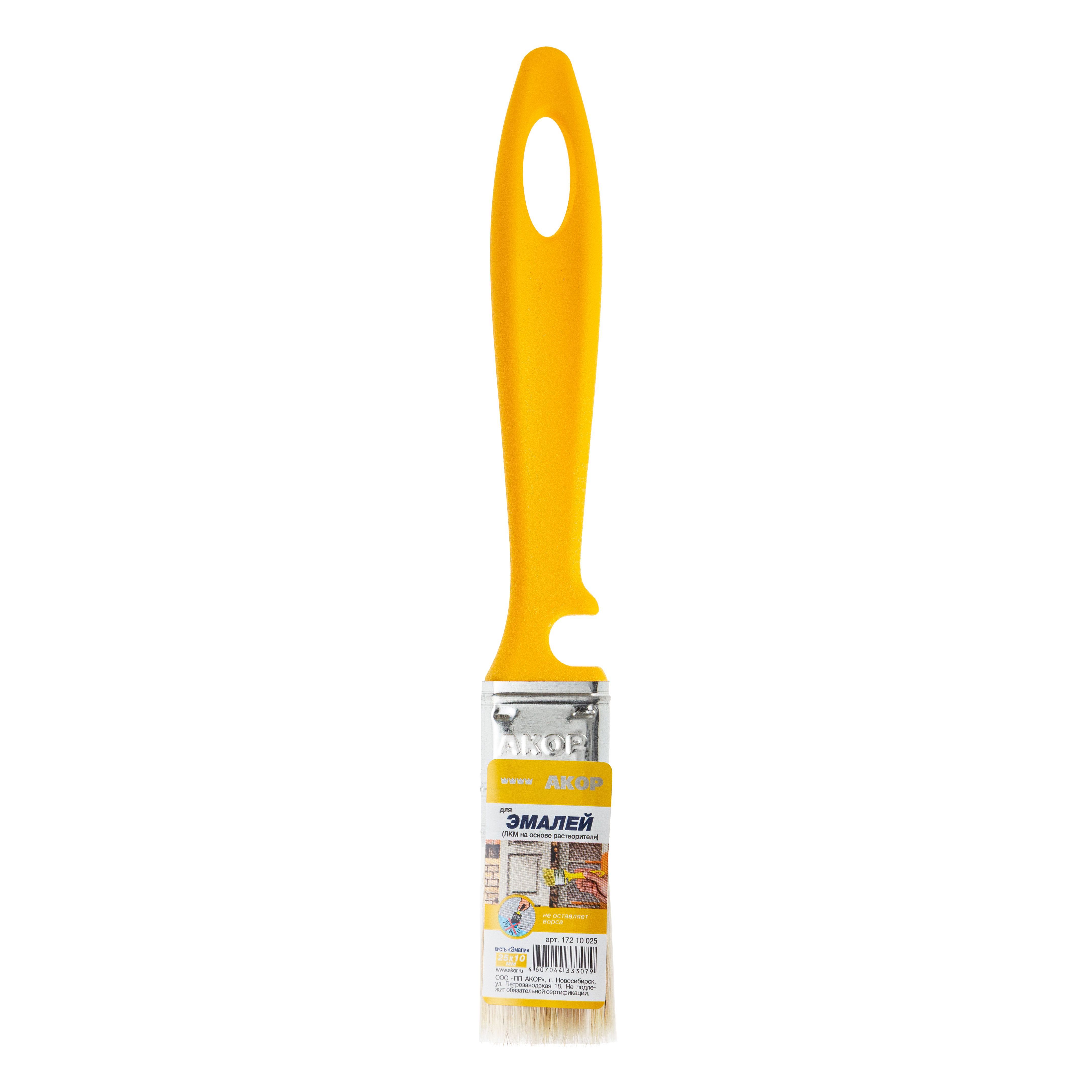 Кисть плоская Эмали (АКОР) натуральная щетина, желтая пластиковая ручка с креплением. Идеальный инструмент для качественного окрашивания. Рукоятка оснащена отверстием для подвешивания и креплением.