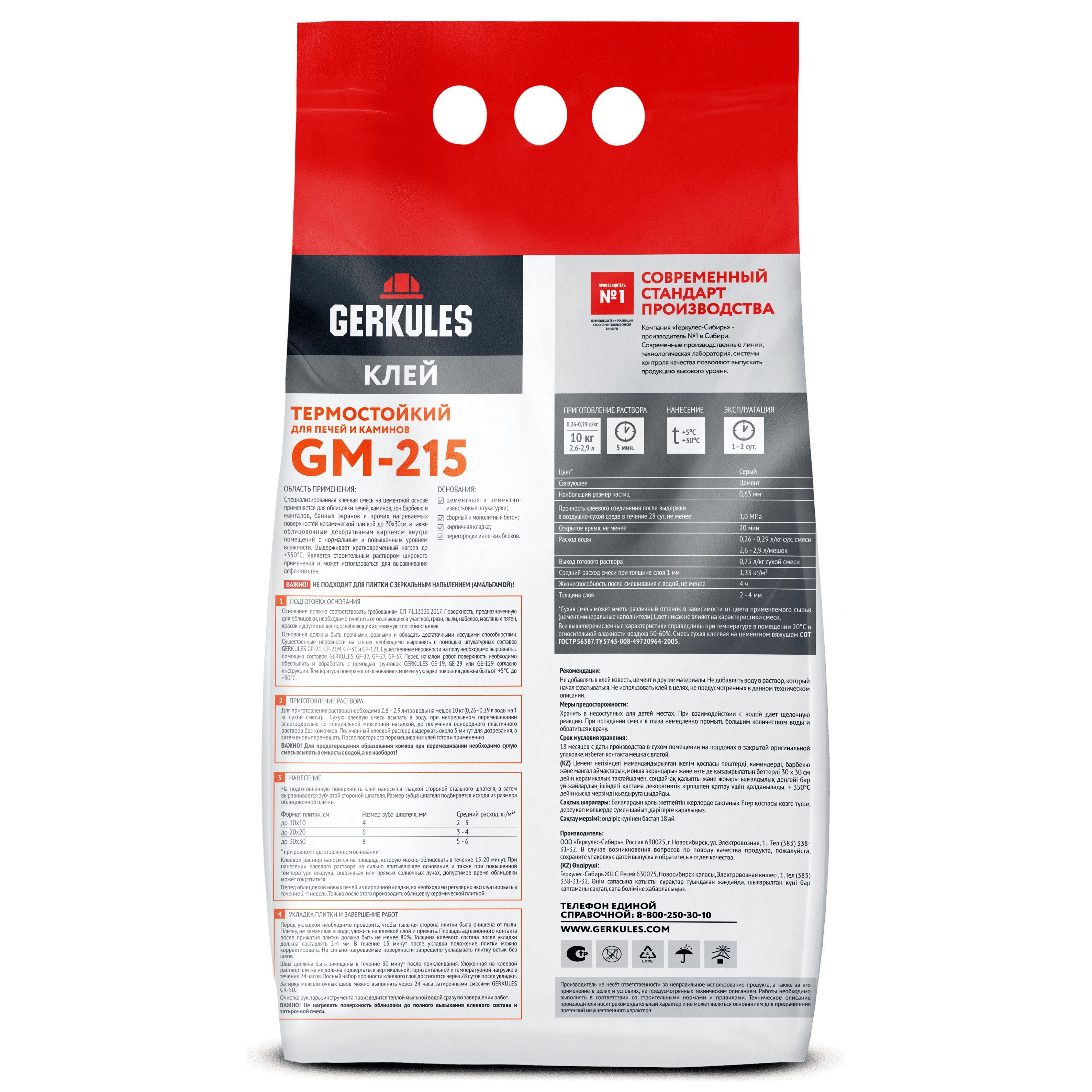Термостойкий клей для печей и каминов GM-215 позволяет выполнить весь цикл работ: от кладки до затирки швов между облицовочной плиткой. Состав клея: цемент, кварцевый песок определенного фракционированный состава, минеральные и полимерные добавки ведущих европейских производителей. Клей можно колеровать пигментными пастами на водной основе.