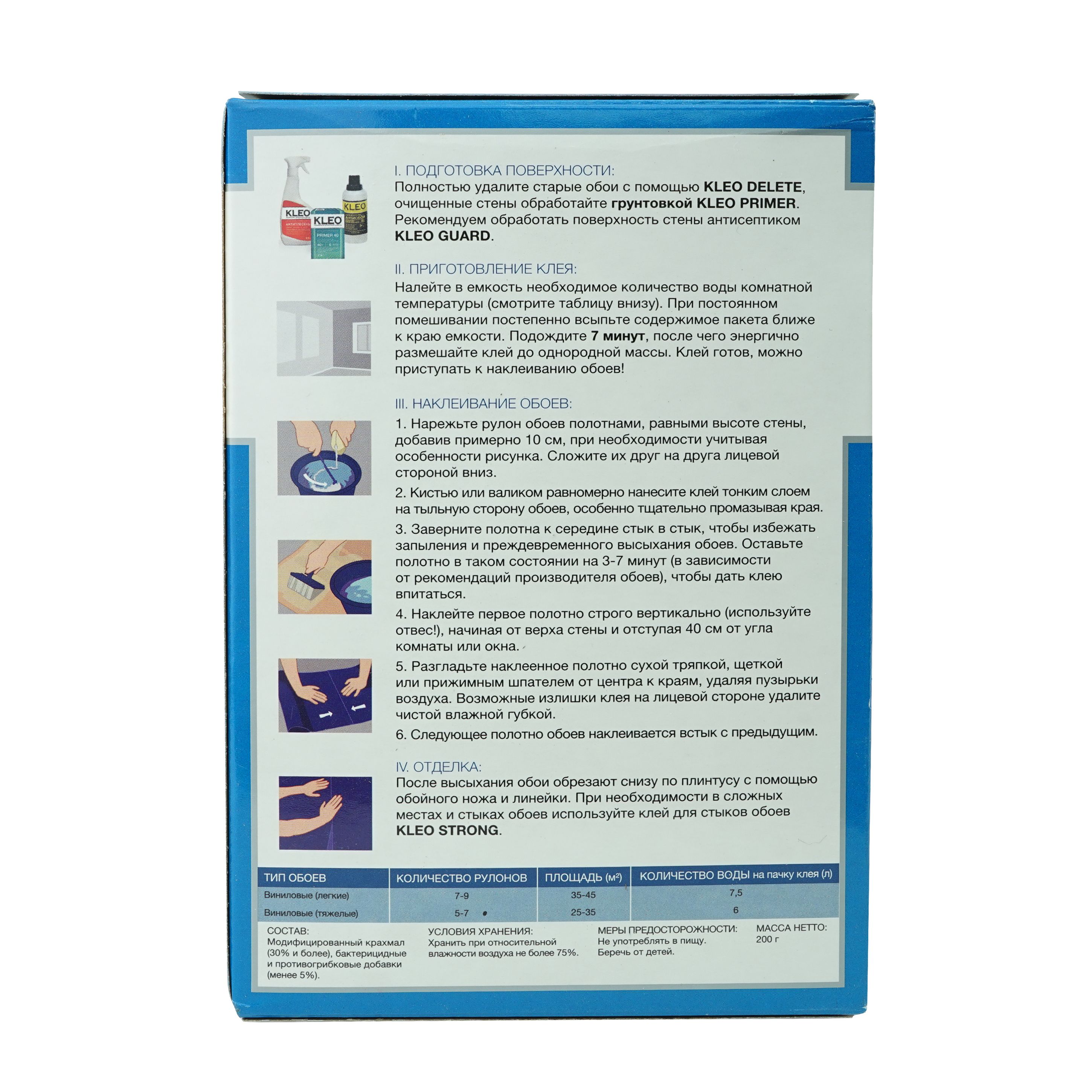 Для наклеивания всех видов бумажных и виниловых обоев. Наносится на обои. При нанесении обои легко корректируются. Сохраняет прозрачность после нанесения. В готовом виде хранится 10 дней. Для внутренних работ.
