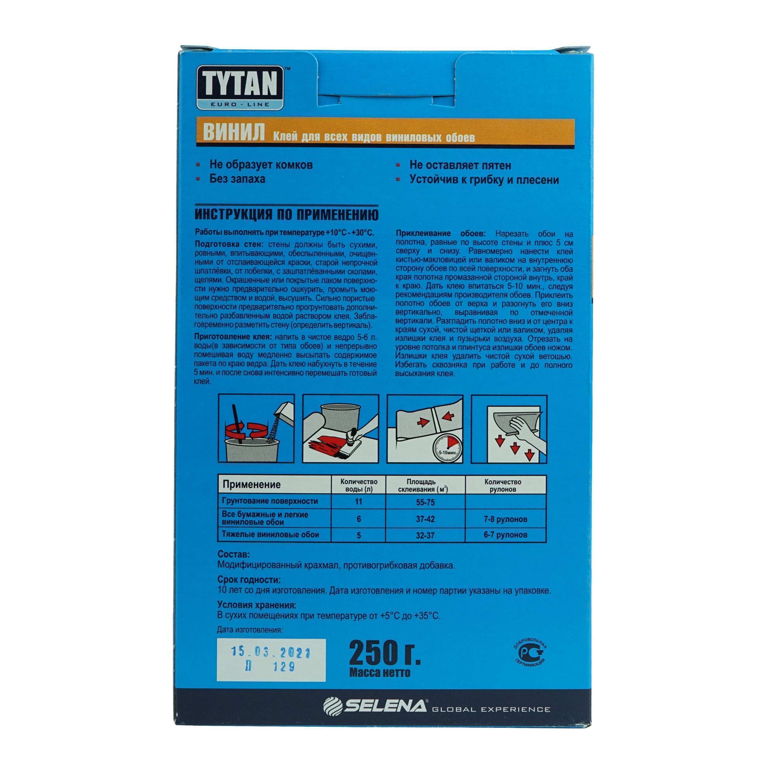 Клей обойный ТИТАН Евро-лайн ВИНИЛ изготовлен на основе модифицированных крахмалов немецкого производства, антисептических и противогрибковых добавок и светло-розового цветоиндикатора.