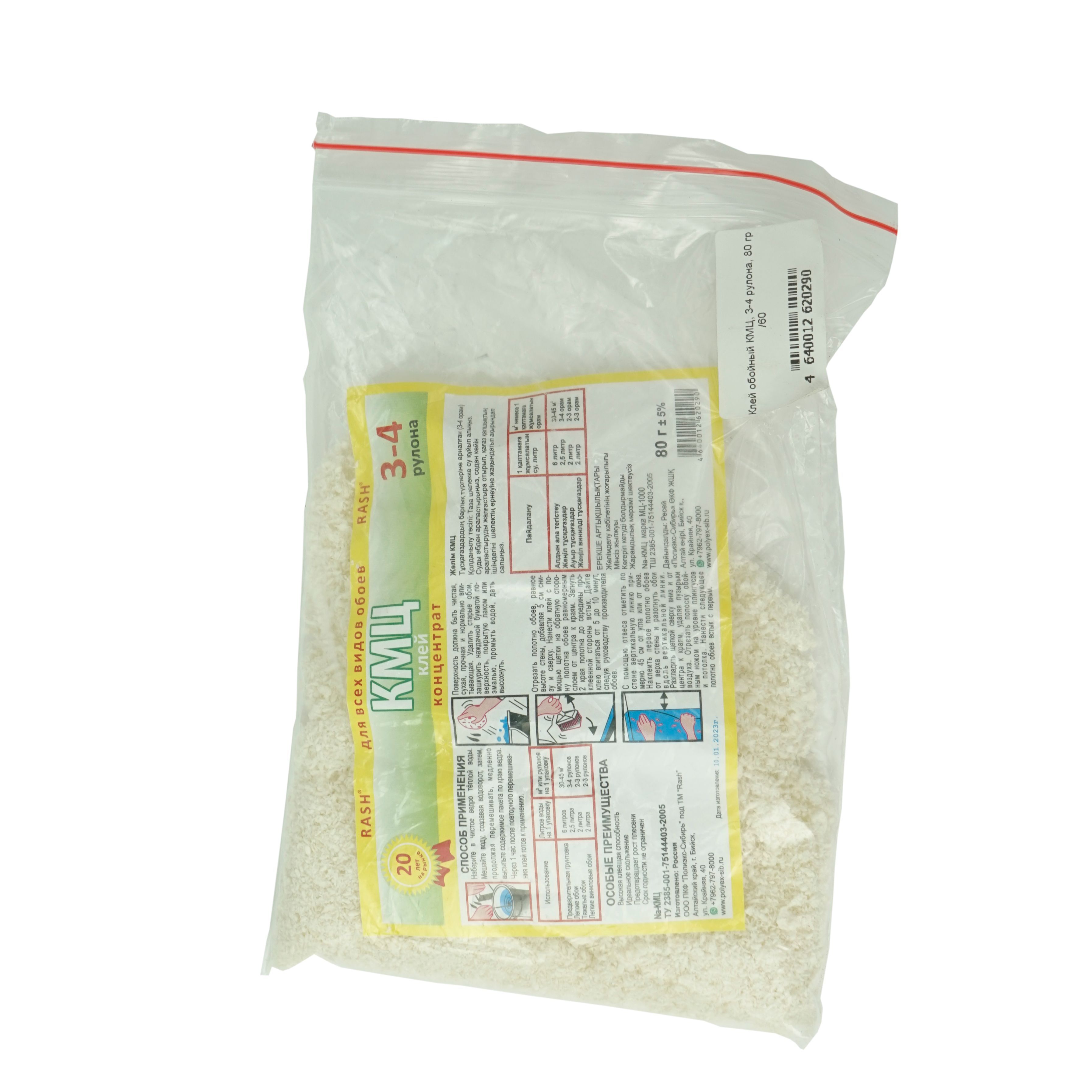Клей предназначен для всех типов обоев в зависимости от его концентрации в водном растворе и для предварительной обработке стен.