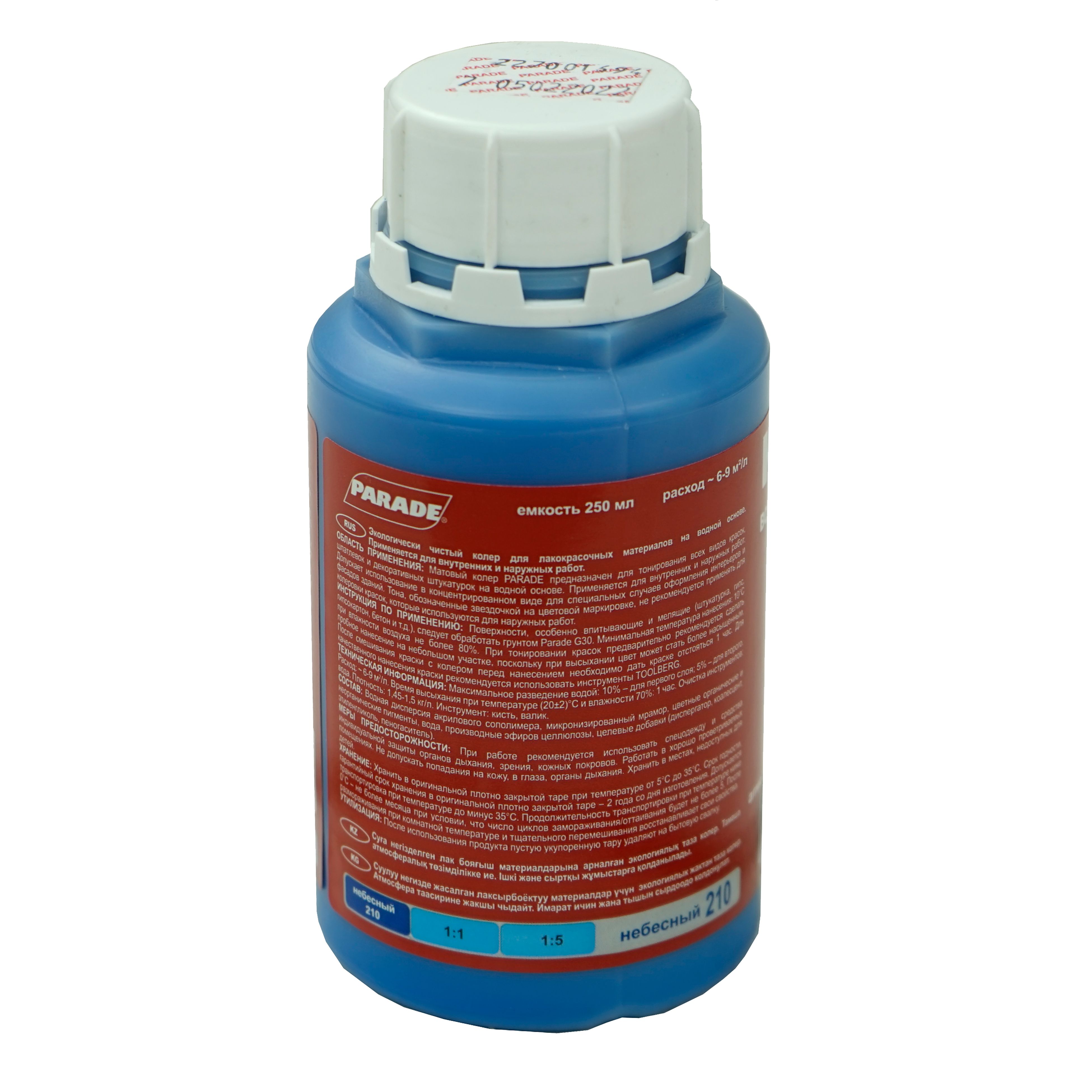 Колер-паста ПАРАД №210 Небесный, для воднодисперсионной краски 0,25л. Экологически чистый колер для лакокрасочных материалов на водной основе. Состав: Водная дисперсия акрилового сополимера.