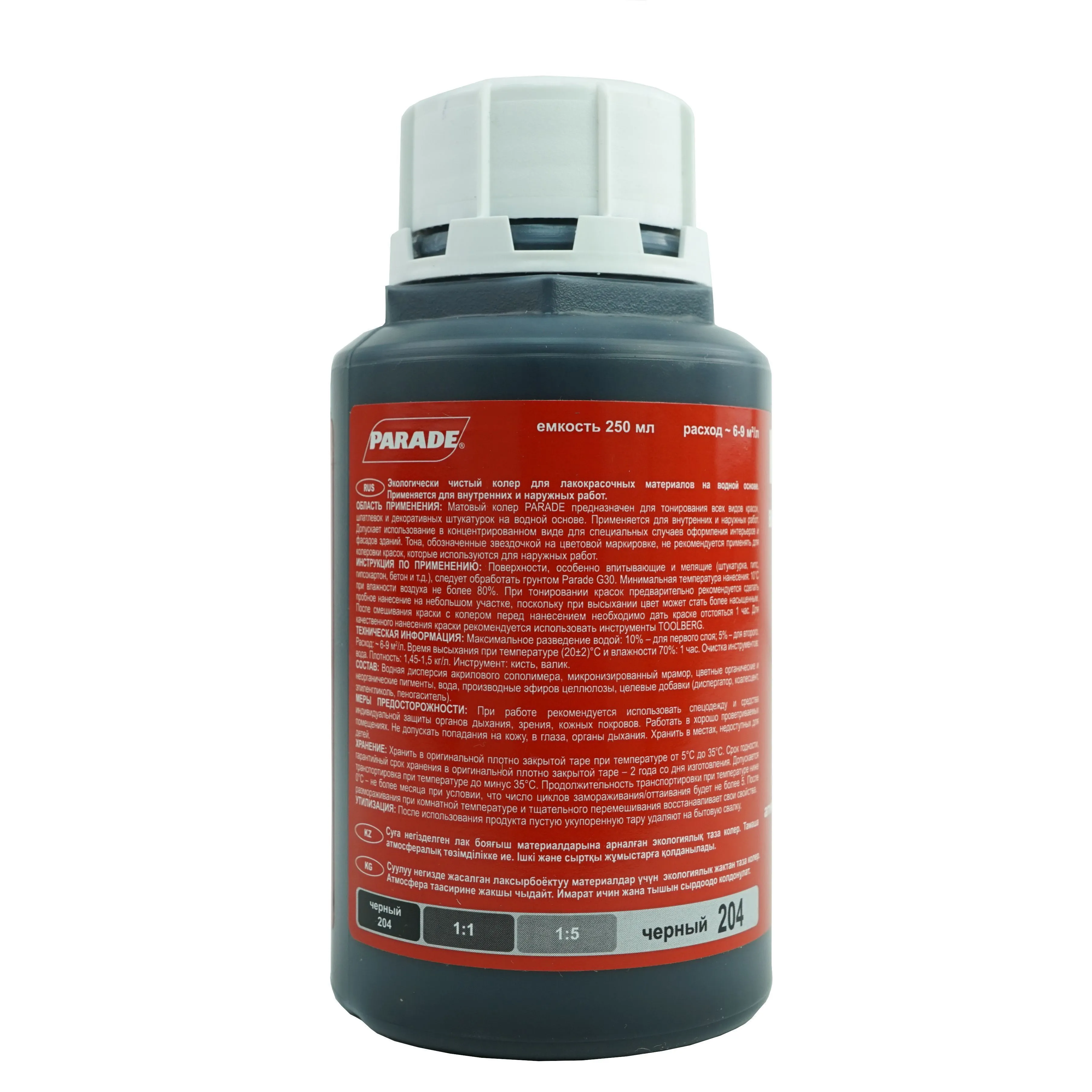 Колер-паста ПАРАД №204 Черный, для воднодисперсионной краски 0,25л. Экологически чистый колер для лакокрасочных материалов на водной основе. Состав: Водная дисперсия акрилового сополимера.