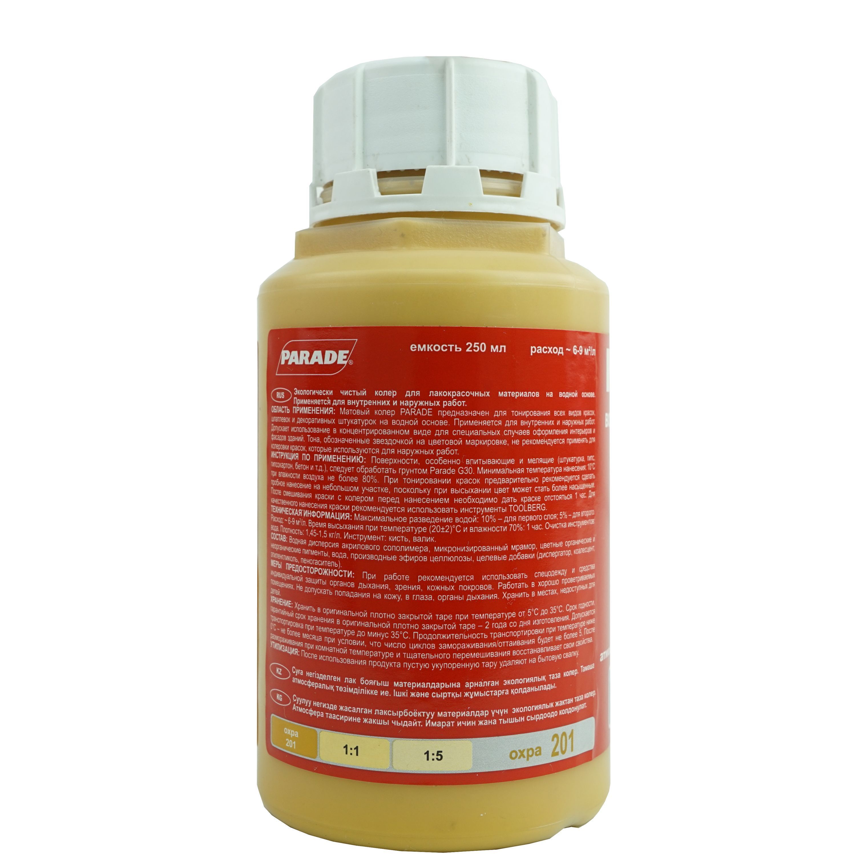 Колер-паста Parade №201 Охра, для воднодисперсионной краски 0,25л цена - купить в Барнауле, Бийске. Размеры, характеристики, фото в интернет-магазине.