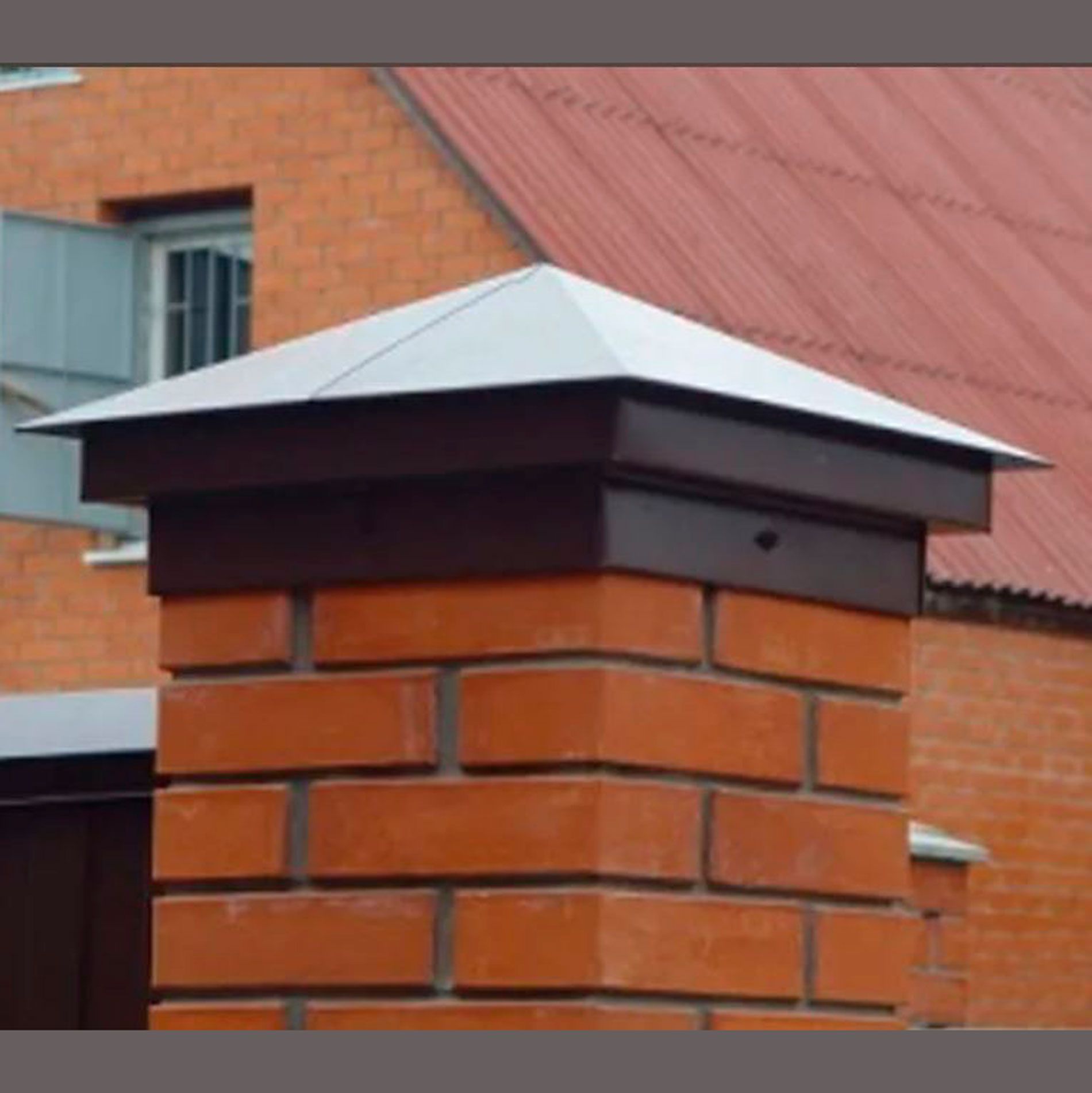 Предназначен для защиты заборных столбов от преждевременного разрушения при воздействии осадков и механических повреждений, а также для декоративной отделки. Кирпичный столб с колпаком имеет законченный эстетичный внешний вид.