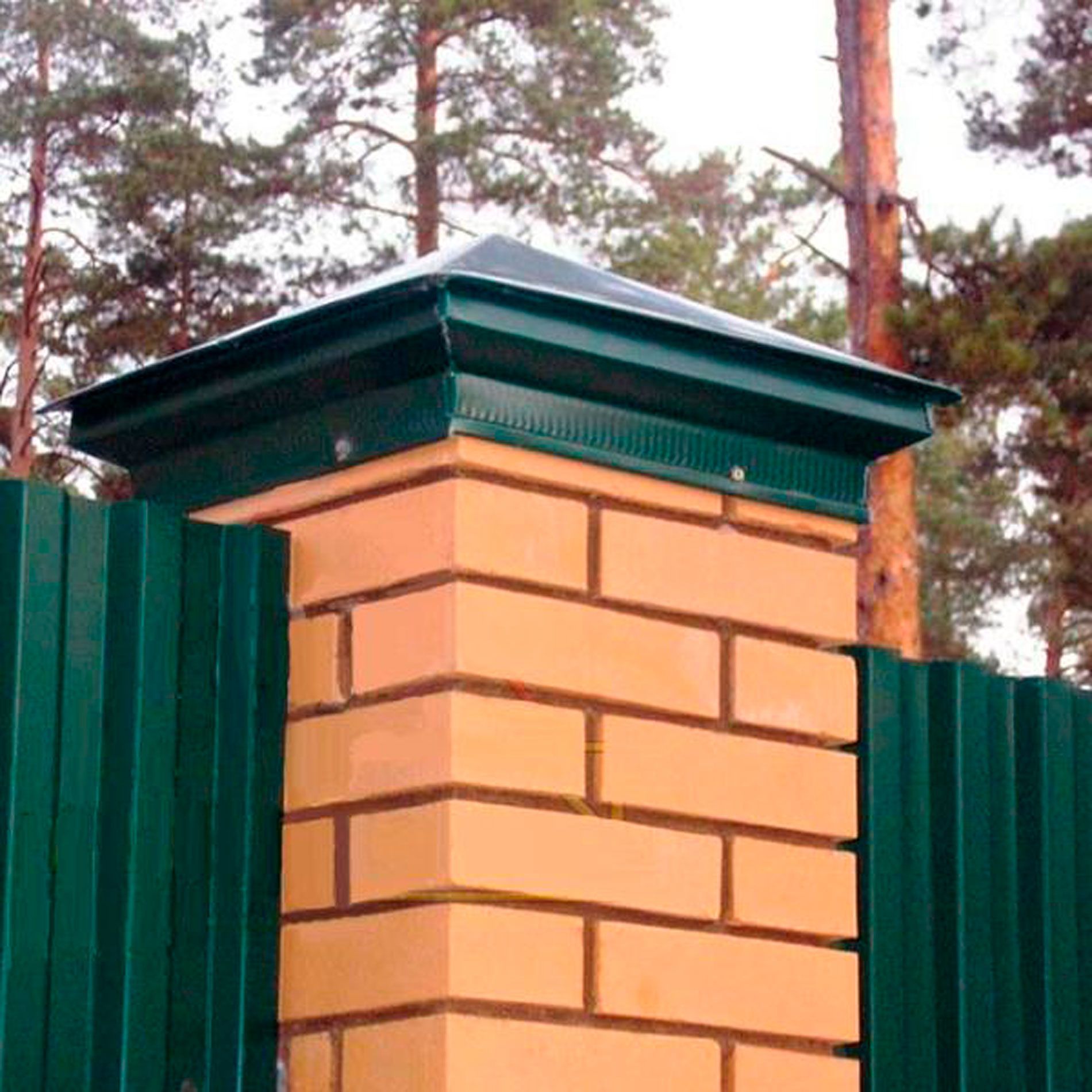 Защищает столб от дождя и ветра, добавляя аккуратности всему забору и продляя его срок службы.