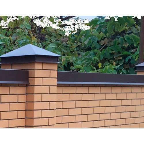 Предназначен для защиты заборных столбов от преждевременного разрушения при воздействии осадков и механических повреждений, а также для декоративной отделки. Кирпичный столб с колпаком имеет законченный эстетичный внешний вид.