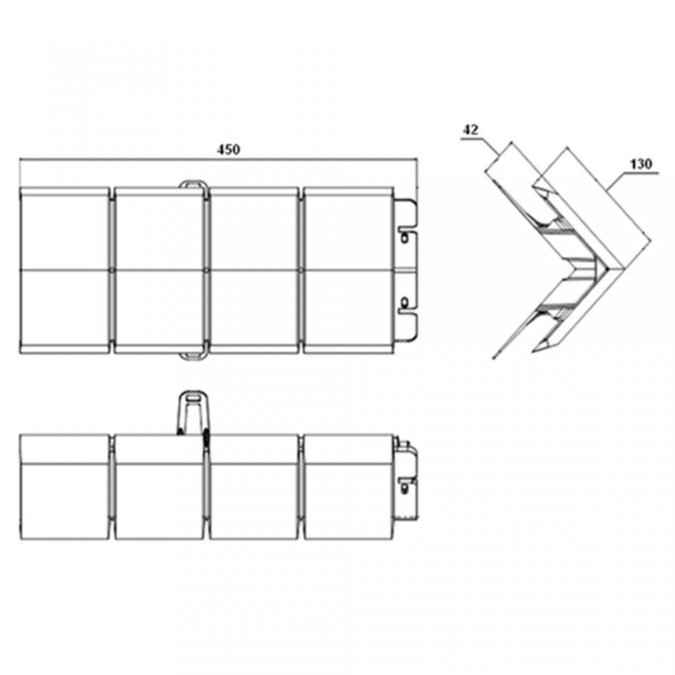При креплении первого наружного угла установите его на стартовую планку и закрутите саморезы в центр верхних перфорационных отверстий по обе стороны. Снизу угол должен быть зафиксирован в стартовой планке, а сверху закреплен саморезами. Следующий угол соедините с предыдущим и закрепите тем же способом. Обеспечьте необходимую свободу перемещения наружного угла при тепловом расширении. Нижний край угла должен на 5 мм отстоять от стартовой планки. Следующий угол соедините с предыдущим и закрепите по центру перфорационных отверстий.