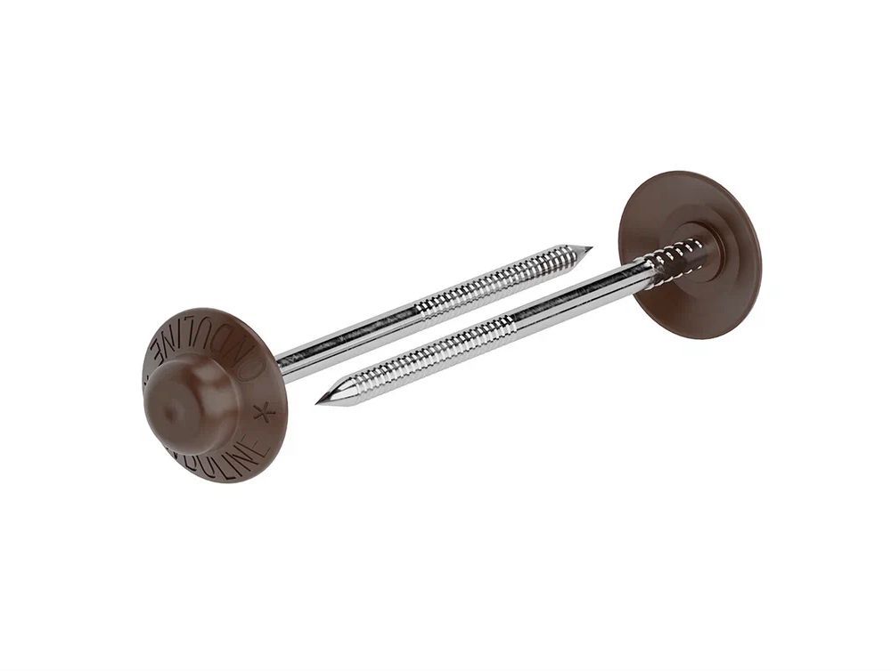 Гвозди с монолитными шляпками обеспечивают герметичность и устойчивость кровли Ондулин к воздействию ветра.