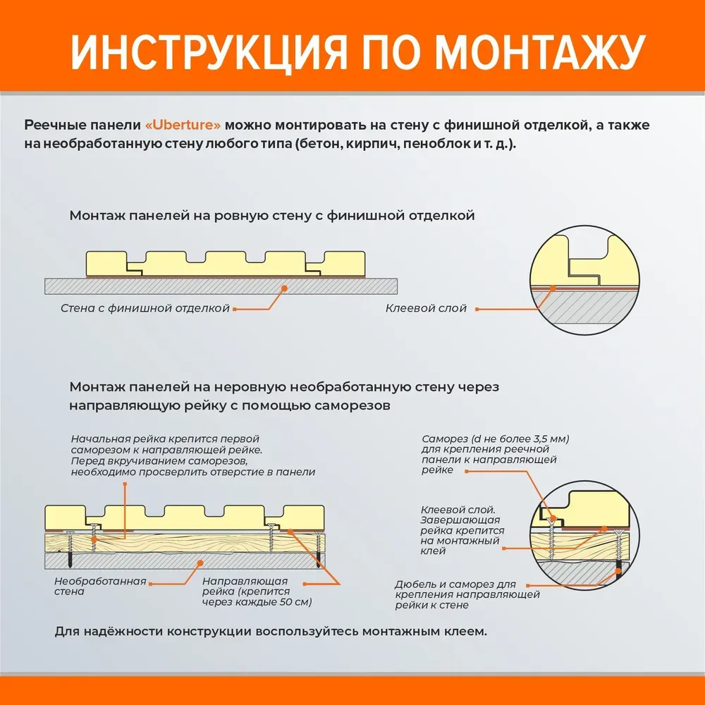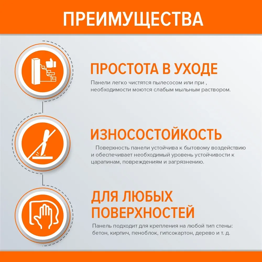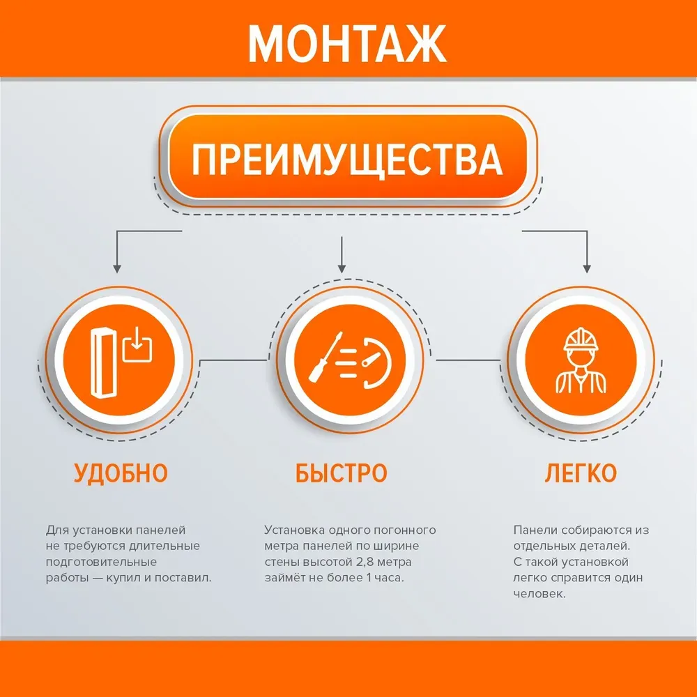 - Устанавливается на любой тип стены. Панель подходит для крепления на любой тип стены: бетон, кирпич, пеноблок, гипсокартон, дерево и т. д.