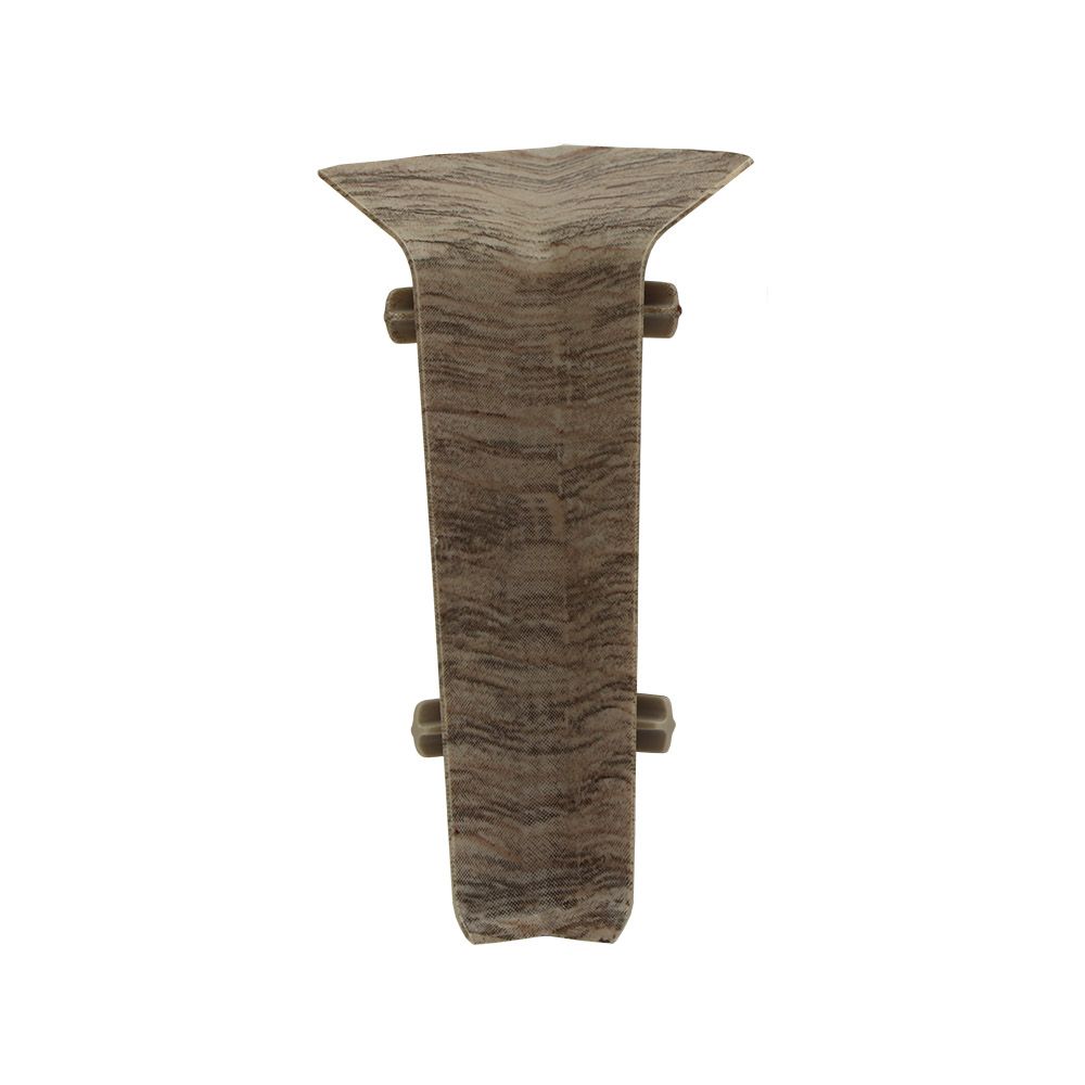 Угол выполнен из пластика, имитирующего фактуру и цвет дерева, в тон напольного плинтуса.