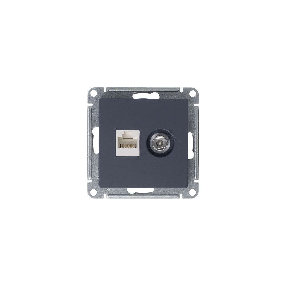 Двойная розетка с разъемами RJ45 категория 5е и TV от производителя Schneider Electric серии AtlasDesign.