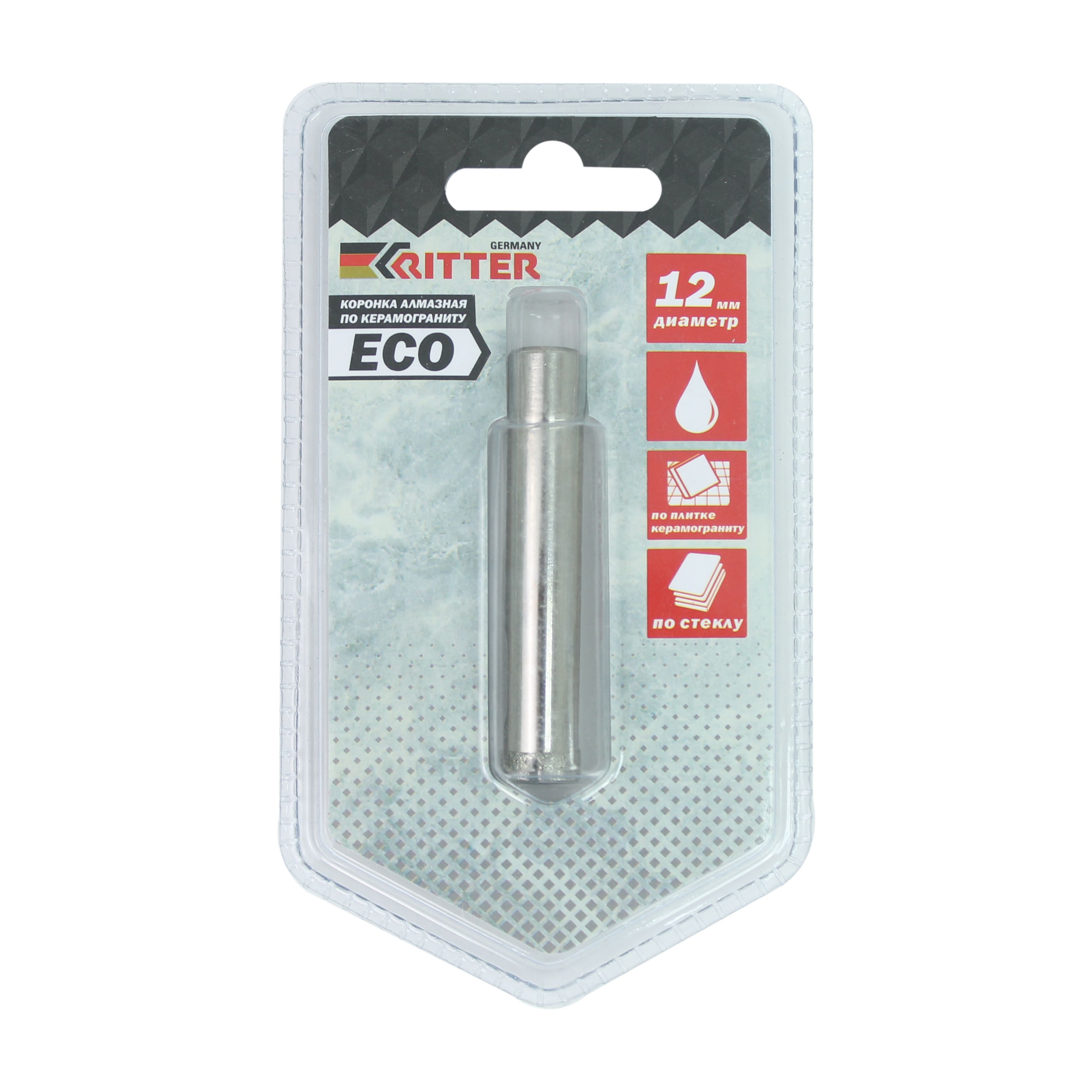 Алмазная коронка — создана специально для сверления. Оптимальный тип работы — безударный, с дополнительным охлаждением водой. Для работы с такой коронкой рекомендуется использовать аккумуляторную дрель, который обладает мощным крутящим элементом и невысокими оборотами. Частота вращения — от 600 до 800 оборотов в минуту