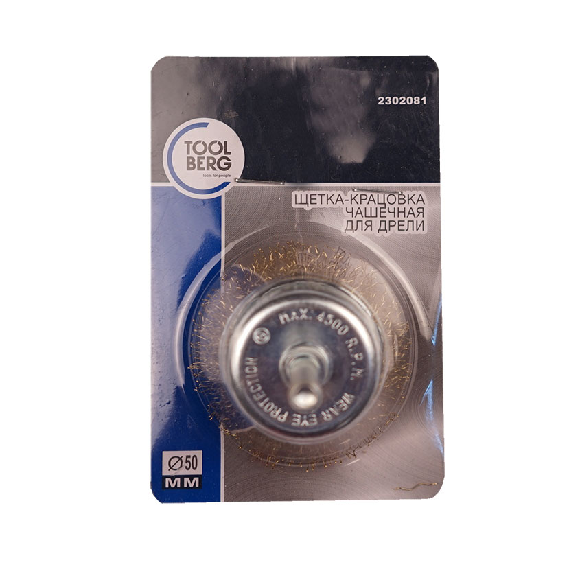 Щетка-крацовка чашечная, латунная витая проволока, 50мм Т4Р - сменный элемент для дрели.