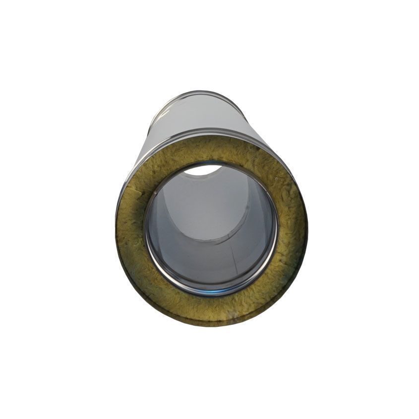 Применяется для отвода дыма на прямых участках дымохода. Двустенные системы дымоходов представляют собой конструкцию, состоящую из двух труб различного диаметра (внешней и внутренней). Пространство между ними заполнено негорючим теплоизоляционным материалом.