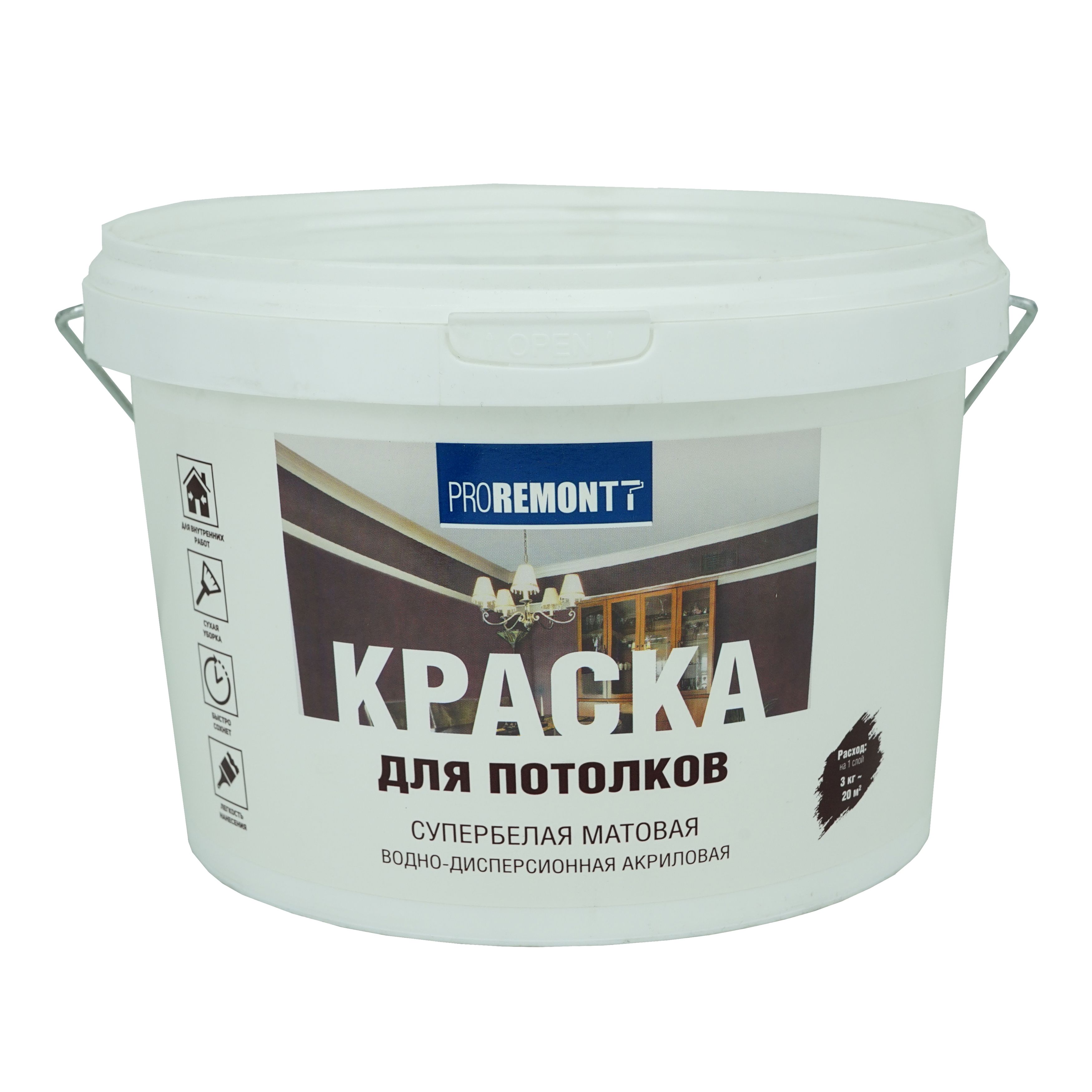 Краска для потолков воднодисперсионная Propemontt супербелая 3кг цена - купить в Барнауле, Бийске. Размеры, характеристики, фото в интернет-магазине.