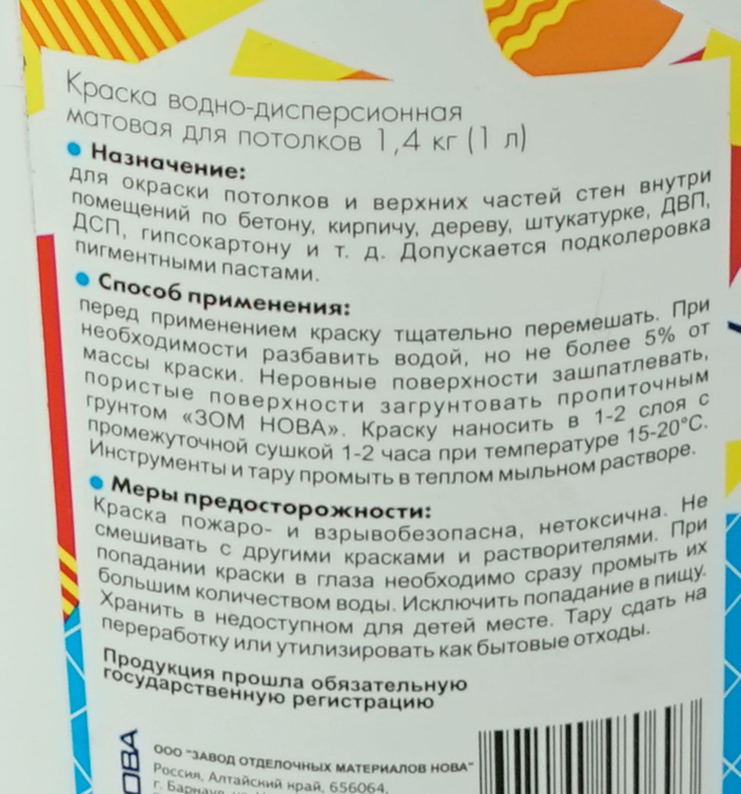 Краска для потолков ОПТИМА-2 1,4кг /4 цена - купить в Барнауле, Бийске. Размеры, характеристики, фото в интернет-магазине.