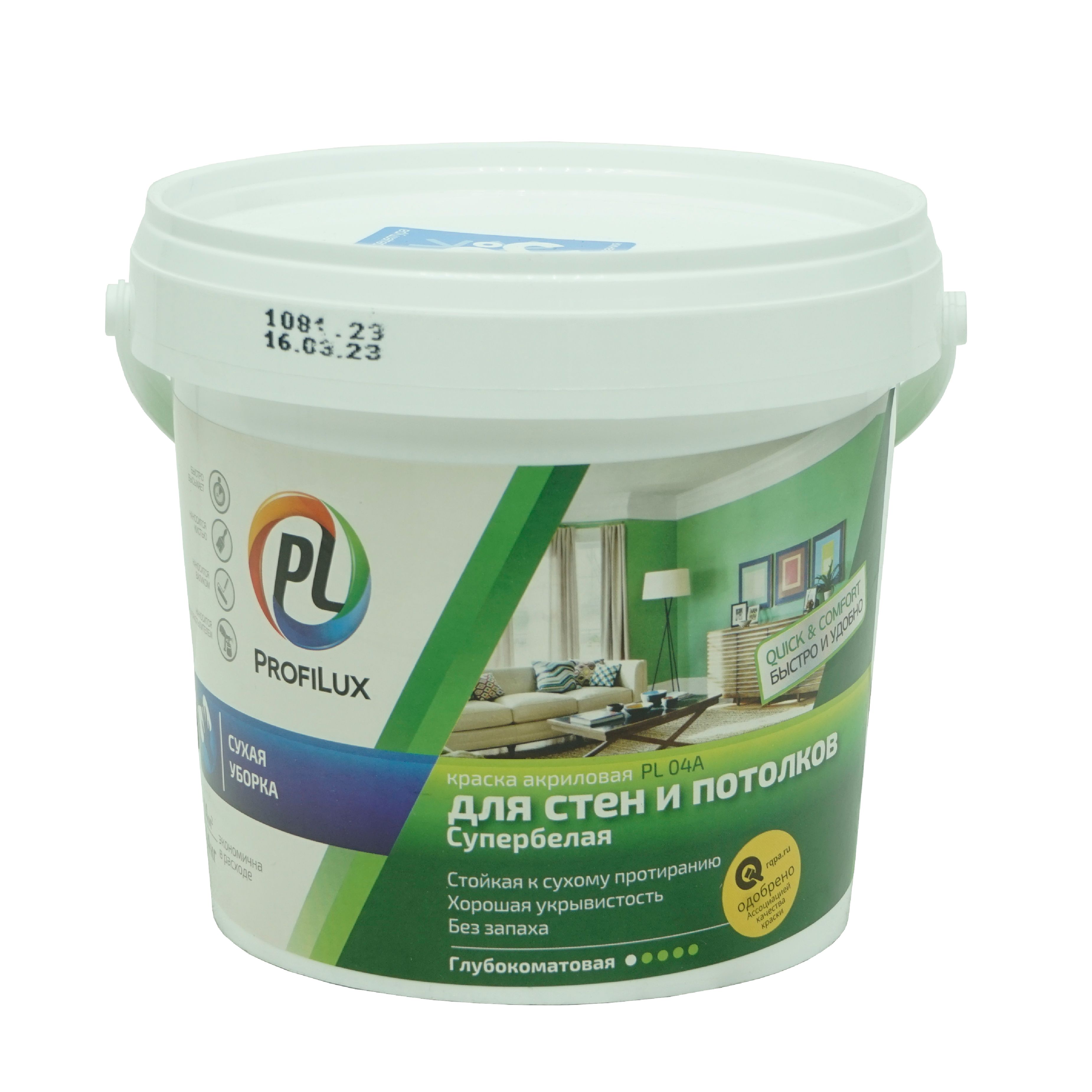 Краска для стен и потолков акриловая Профилюкс PL-04А.