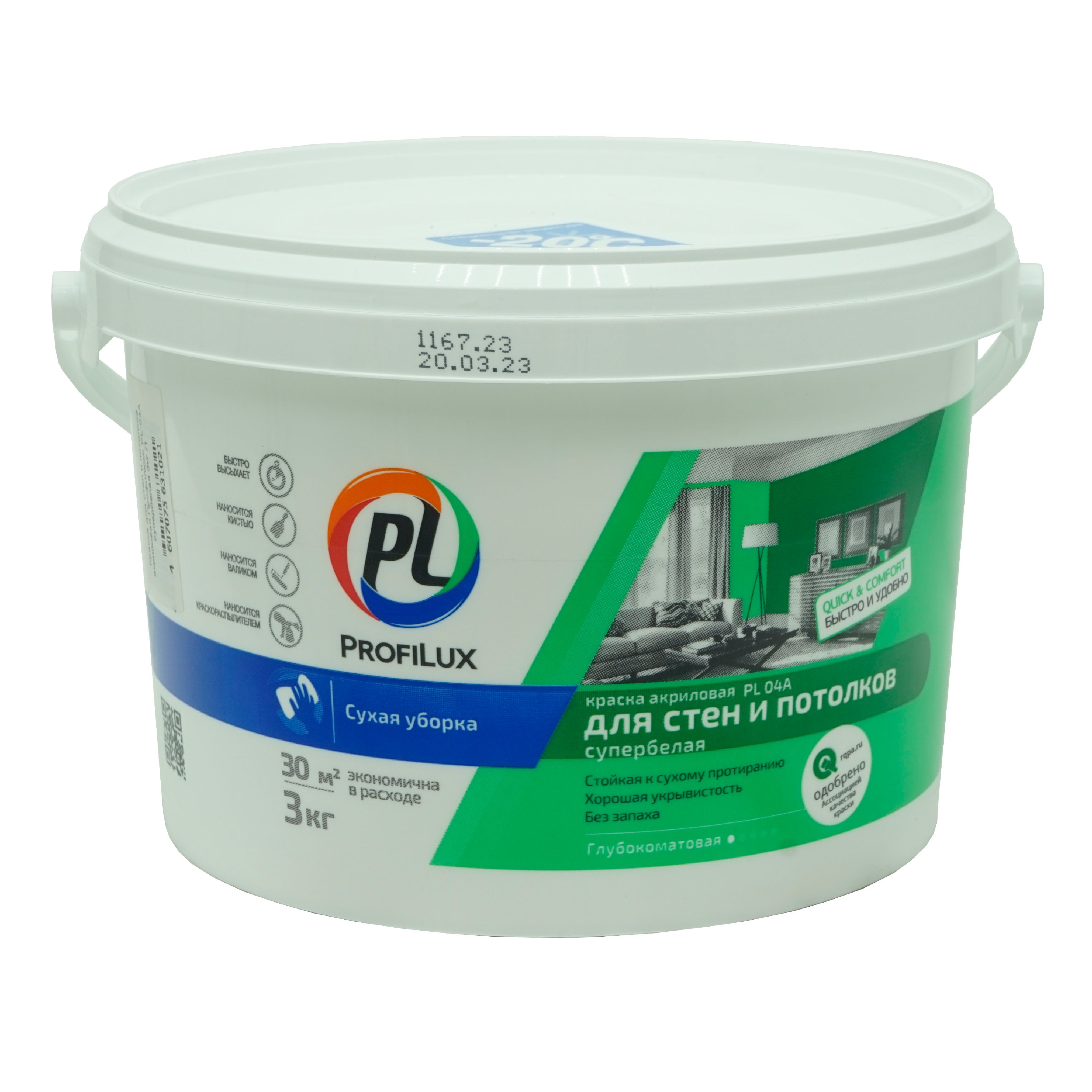 Краска для стен и потолков акриловая Профилюкс PL-04А.