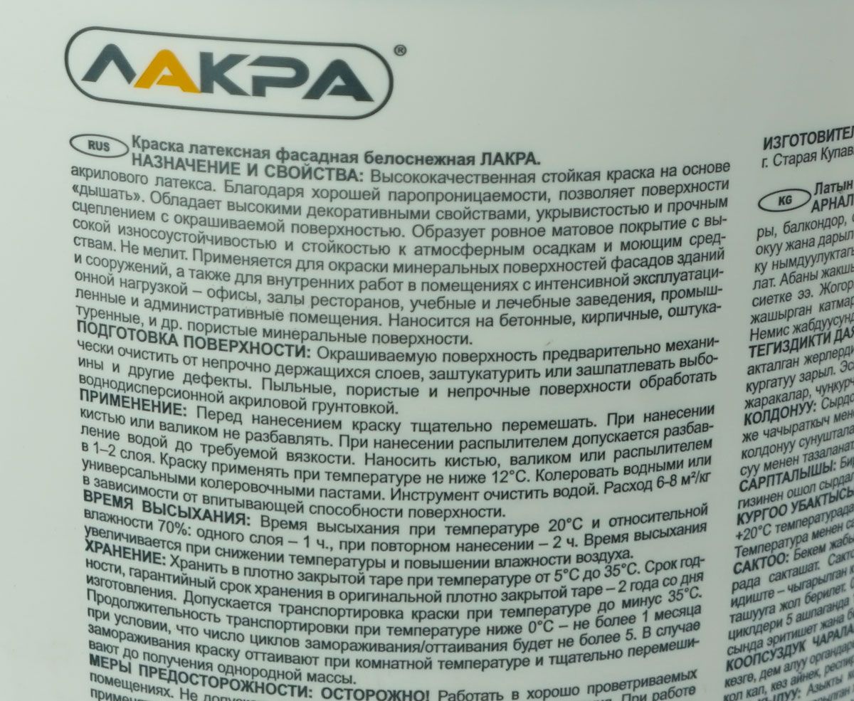 Фасадная краска Лакра – высококачественная стойкая краска на основе акрилового латекса.