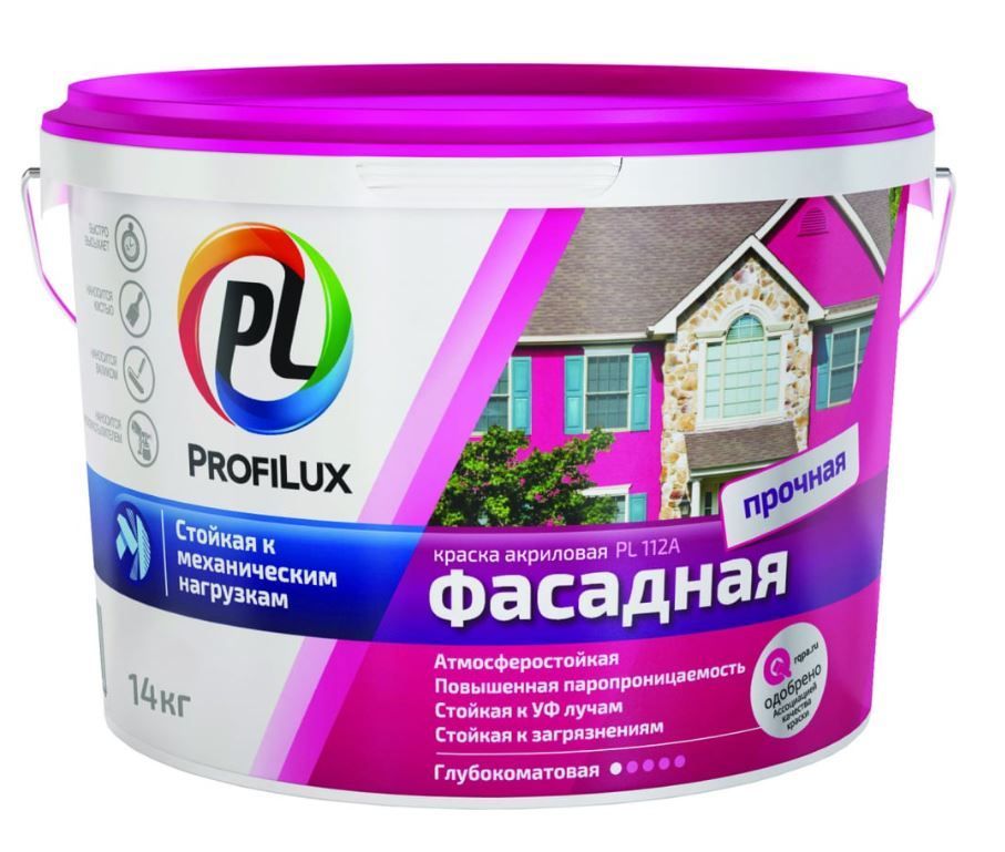 Краска фасадная Profilux PL-112А влагостойкая белая 14кг цена - купить в Барнауле, Бийске. Размеры, характеристики, фото в интернет-магазине.
