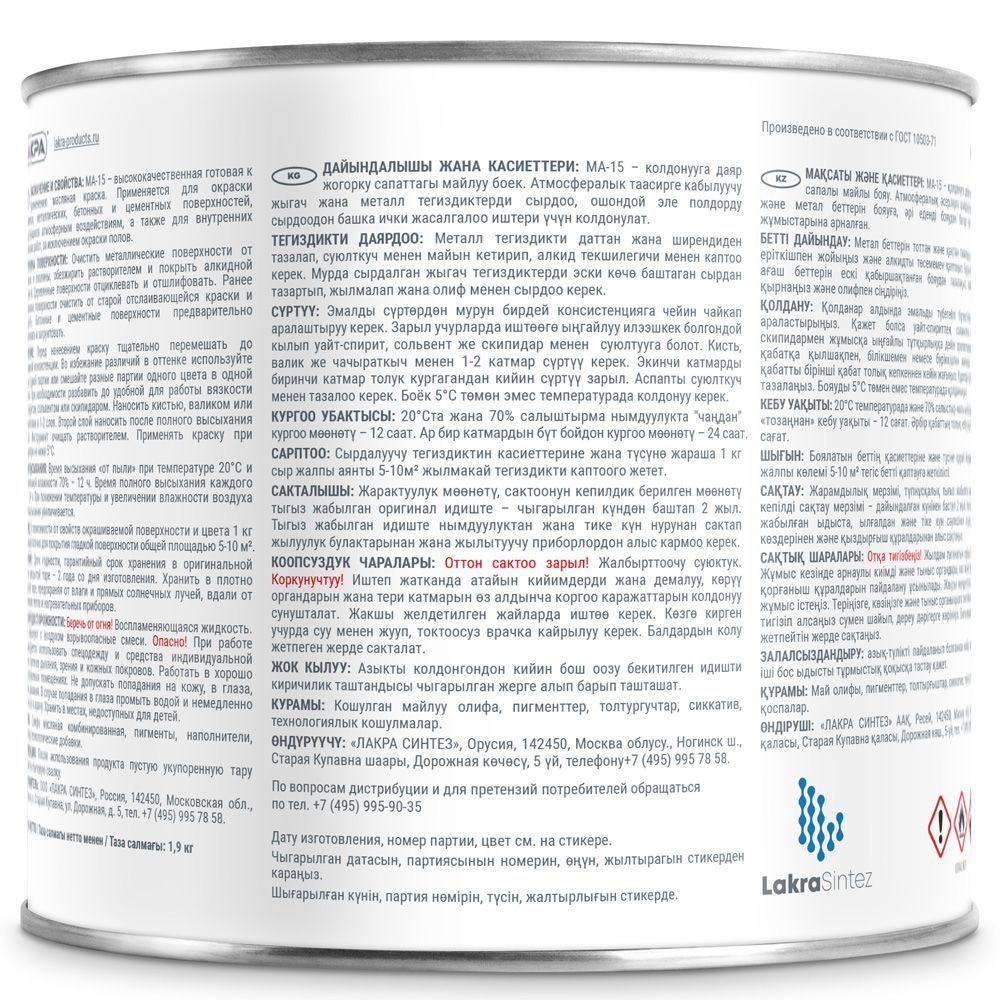 Краска МА-15 Лакра сурик железный используется, для антикоррозионной защиты метала. Суриком МА-15 окрашиваются металлические гаражи, радиаторы отопления, трубы и листовое железо подверженное атмосферным воздействиям.