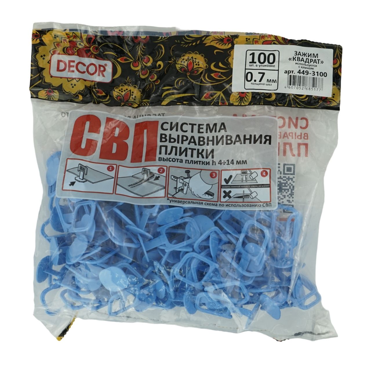 Система выравнивания плитки (DECOR) Квадрат зажим - одноразовый элемент системы выравнивания плитки. В отличии от клиньев, зажимы необходимо использовать новые каждый раз при производстве плиточных работ.