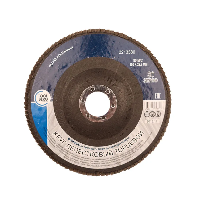 Круг (Т4Р) лепестковый, торцевой, Р80, 150х22мм - сменный элемент для угловых шлифовальных машин.