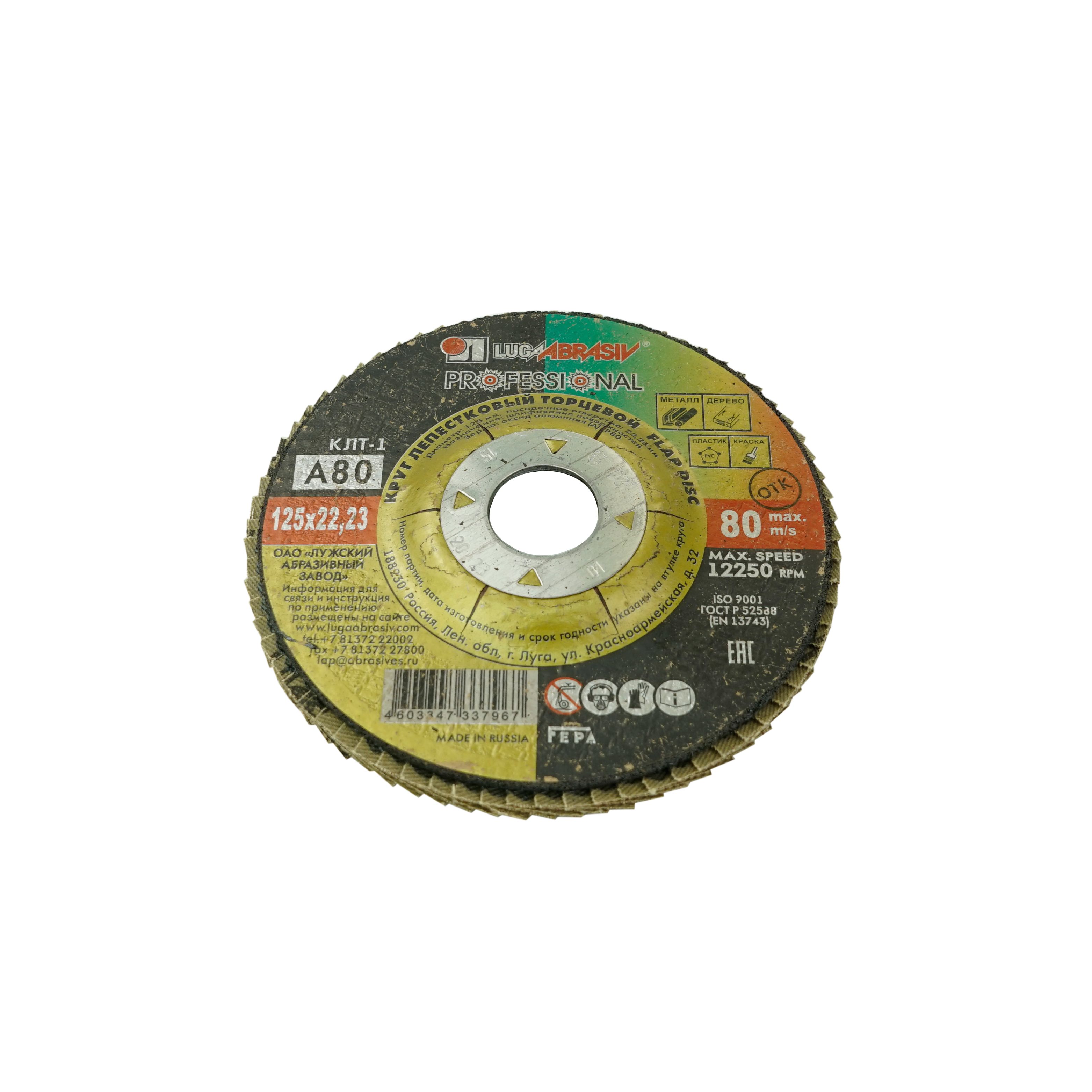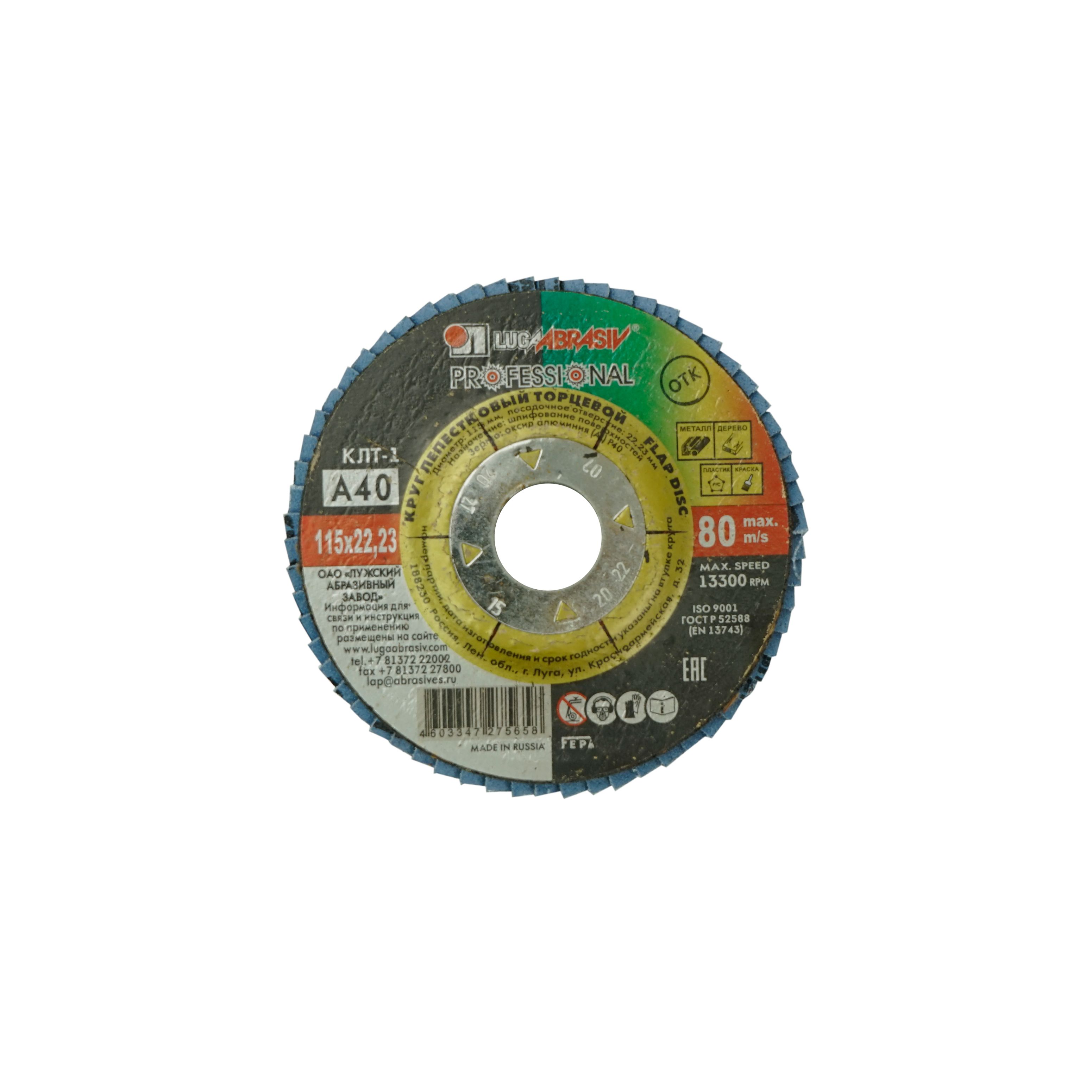 Круг (Луга) лепестковый, торцевой, Р60 – сменный элемент для угловых шлифовальных машин.