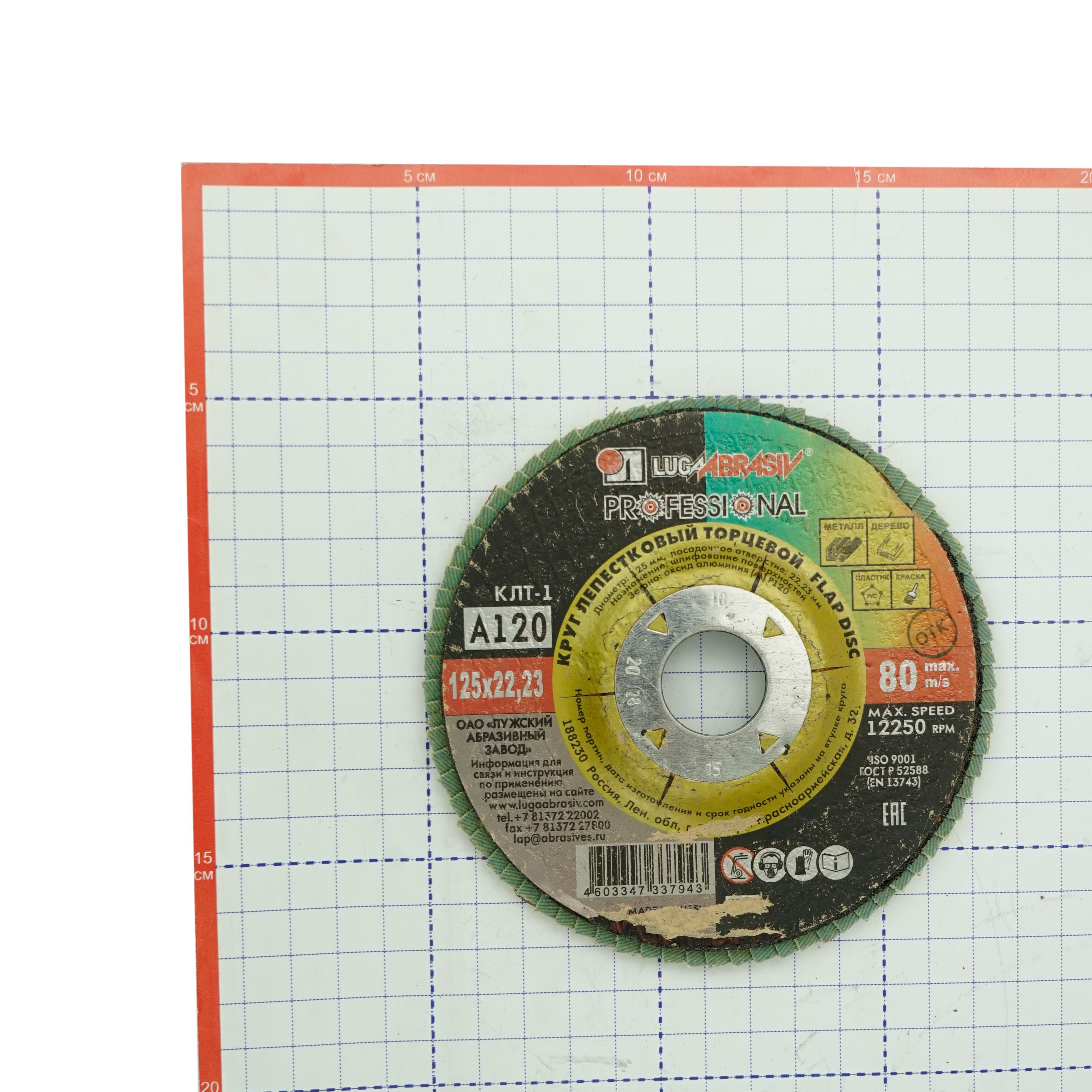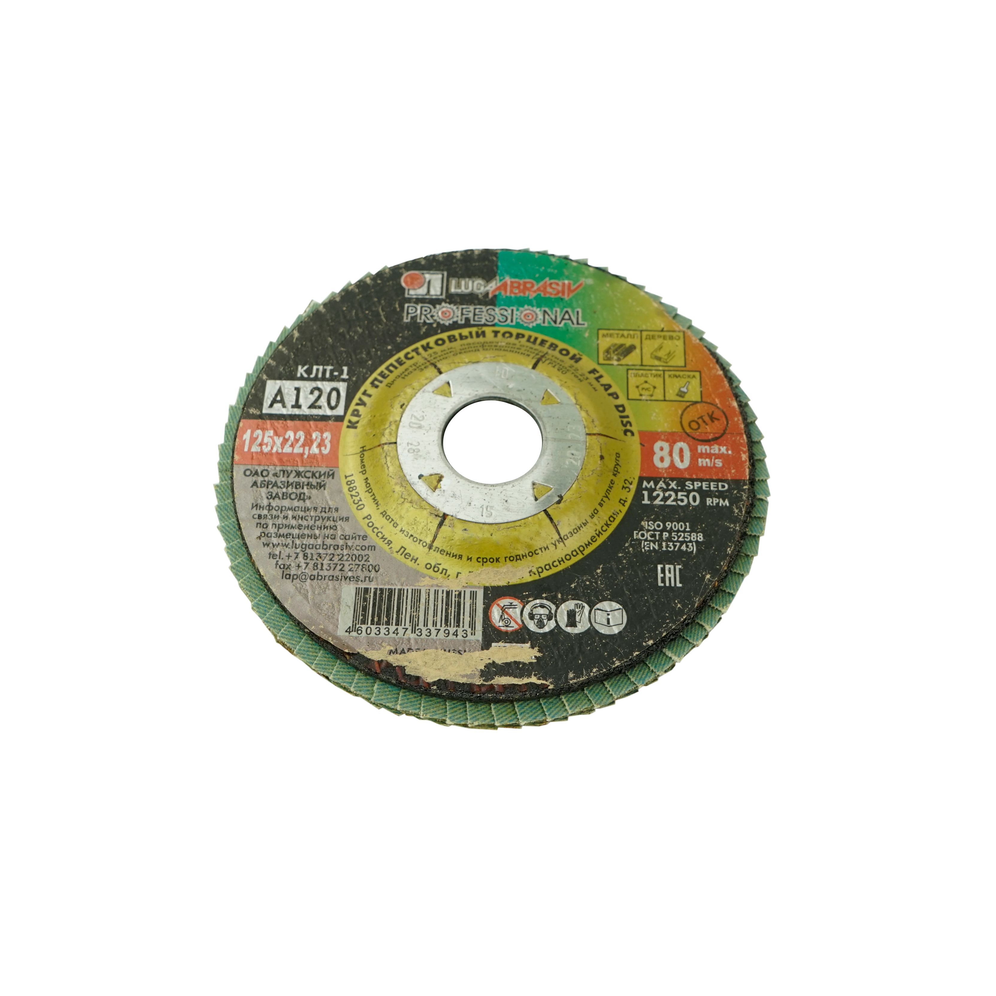 Круг (Луга) лепестковый, торцевой, Р120 – сменный элемент для угловых шлифовальных машин.