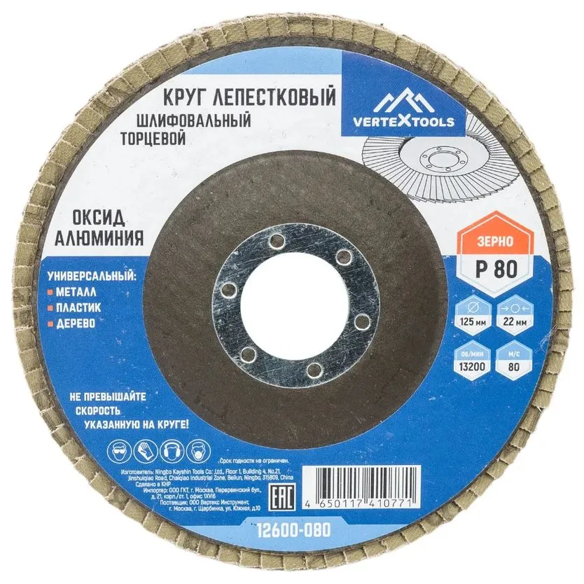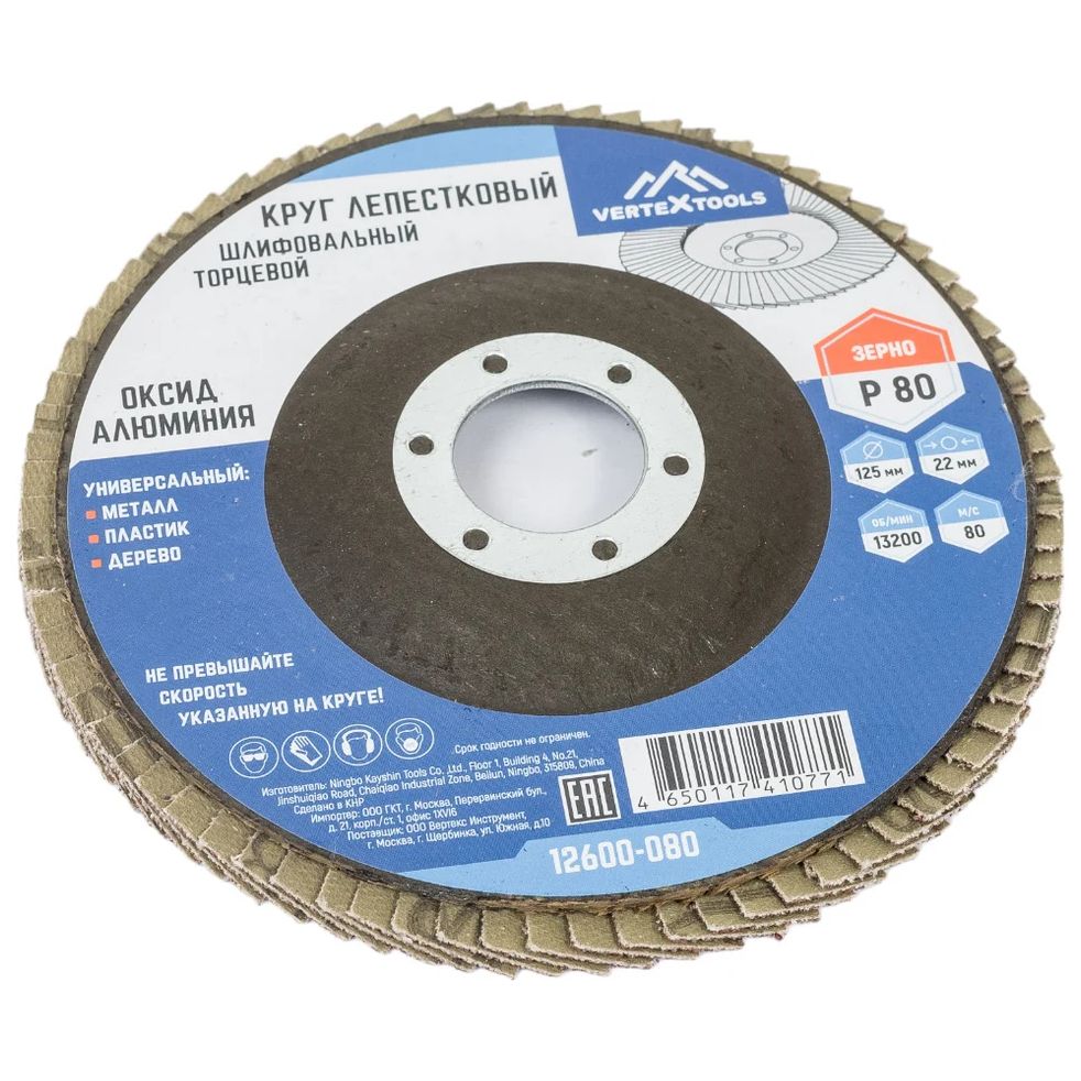 Круг лепестковый торцевой Vertextools устанавливается на стационарные станки или специальные электроинструменты и применяется для обработки различных поверхностей. Он помогает подготовить поверхность под покраску, удалить ржавчину и оскалины, зачистить швы и кромки. Круг шлифовальный справляется с металлом, деревом, пластмассой и другими материалами. Представленная модель состоит из прямоугольных шлифовальных отрезков, которые закреплены внахлест на подложке из стекловолокна. Такая конструкция позволяет качественно отшлифовать не только плоские, но и вогнутые поверхности.
