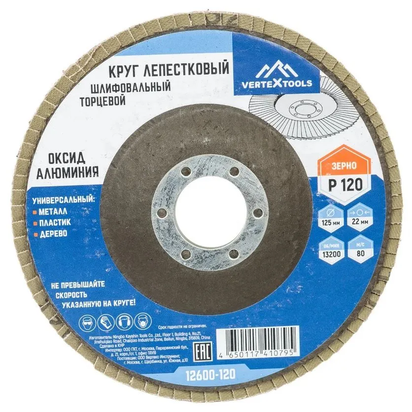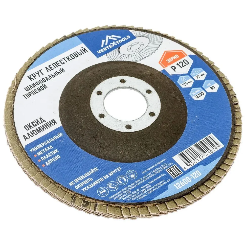 Круг лепестковый торцевой Vertextools устанавливается на стационарные станки или специальные электроинструменты и применяется для обработки различных поверхностей. Он помогает подготовить поверхность под покраску, удалить ржавчину и оскалины, зачистить швы и кромки. Круг шлифовальный справляется с металлом, деревом, пластмассой и другими материалами. Представленная модель состоит из прямоугольных шлифовальных отрезков, которые закреплены внахлест на подложке из стекловолокна. Такая конструкция позволяет качественно отшлифовать не только плоские, но и вогнутые поверхности.