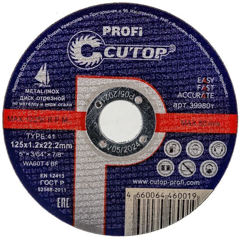 Круг отрезной абразивный (Cutop Profi) по металлу и нержавеющей стали 125х1,2х22,2мм цена - купить в Барнауле, Бийске. Размеры, характеристики, фото в интернет-магазине.