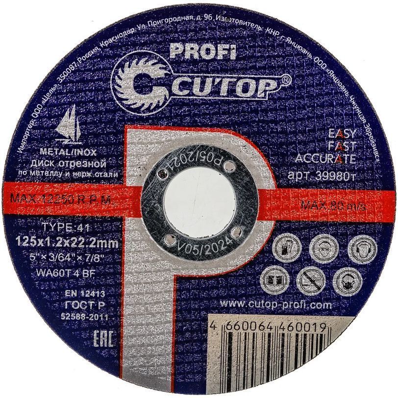 Круг отрезной абразивный CUTOP Профи является сменным элементом для угловых шлифовальных машин.