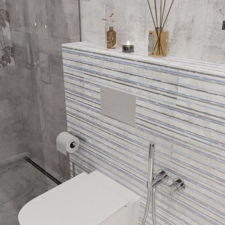 Коллекция Куба бренда Axima лаконична и самодостаточна в своём исполнении. Матовая поверхность отделочного материала имитирует светло-серый и тёмно-серый бетон. Сделать дизайн помещения более разнообразным и лёгким позволяют вставки с бликующими листьями, либо вставки с параллельными полосами с неровными краями. Пожалуй, самым ценным элементом в составе коллекции является панно из трёх плиток с изображением тропических растений, выполненное в благородных травяных оттенках. Рисунок панно изображён таким образом, что плитки могут состыковываться бесконечно, следовательно ими можно выложить не только отдельное панно, но и целую зону.
