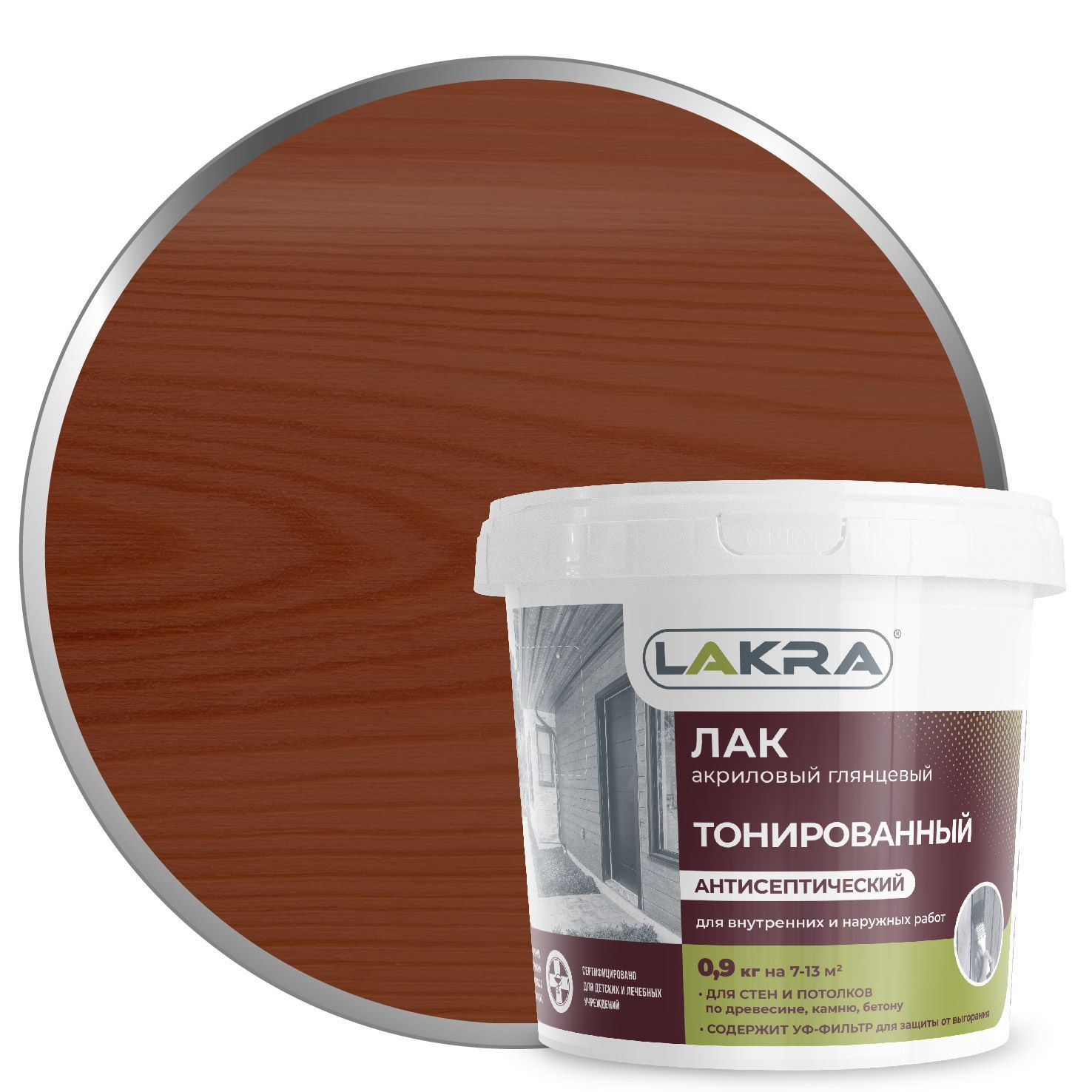 Лак в/д лакра, тонированный, махагон (0,9 кг)