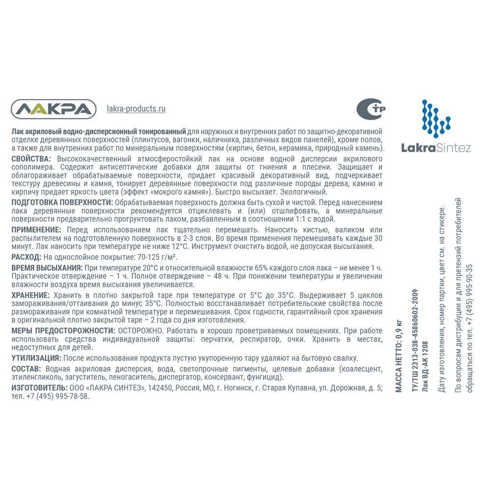 Лак в/д лакра, тонированный, бесцветный (0,9 кг)