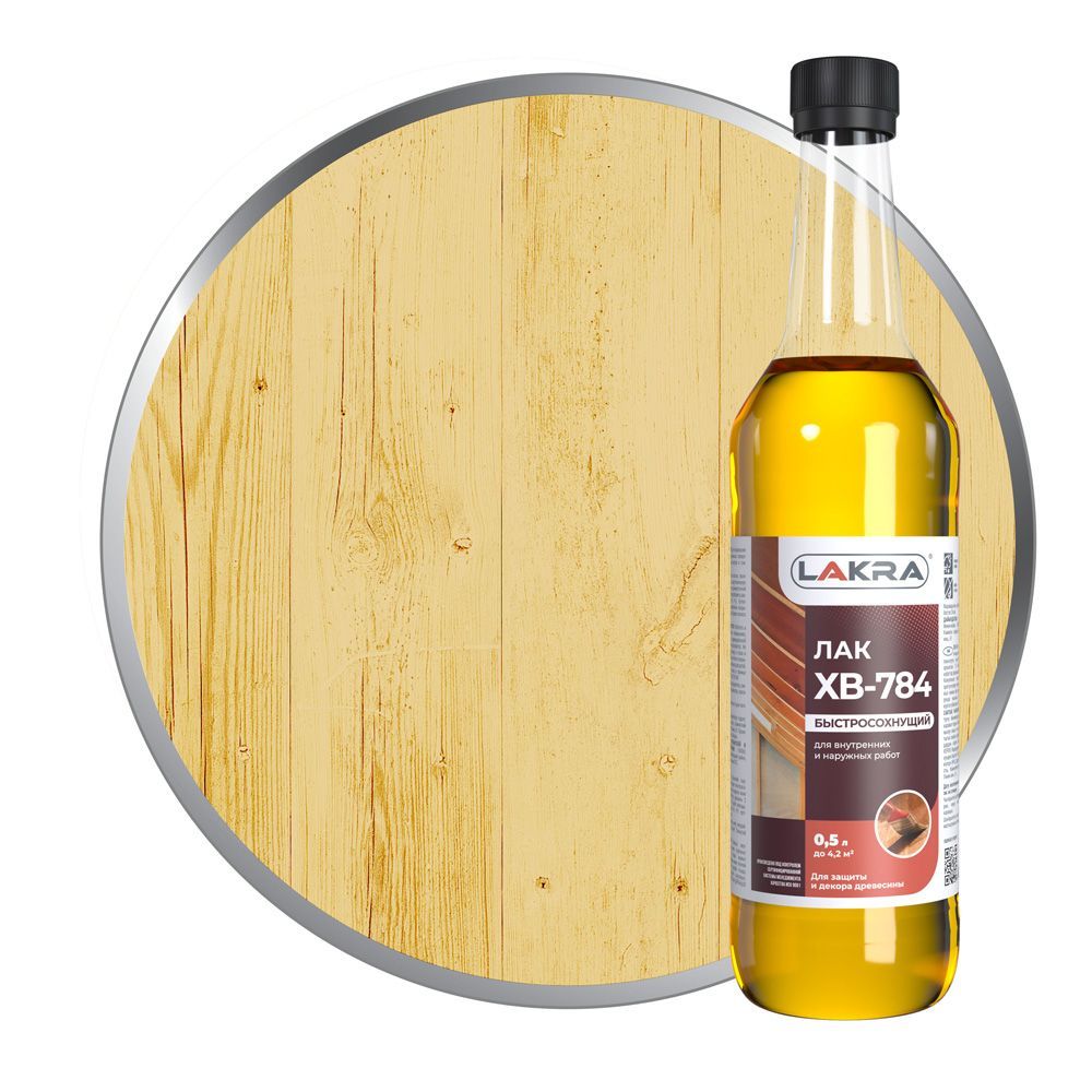 Лак ХВ-784 от бренда Лакра для тонирования и защиты деревянных поверхностей.