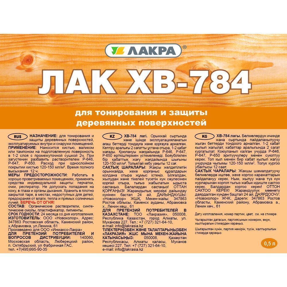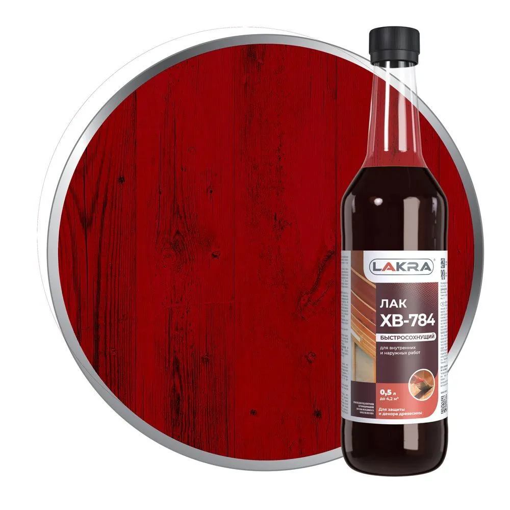 Лак ХВ-784 от бренда Лакра для тонирования и защиты деревянных поверхностей.