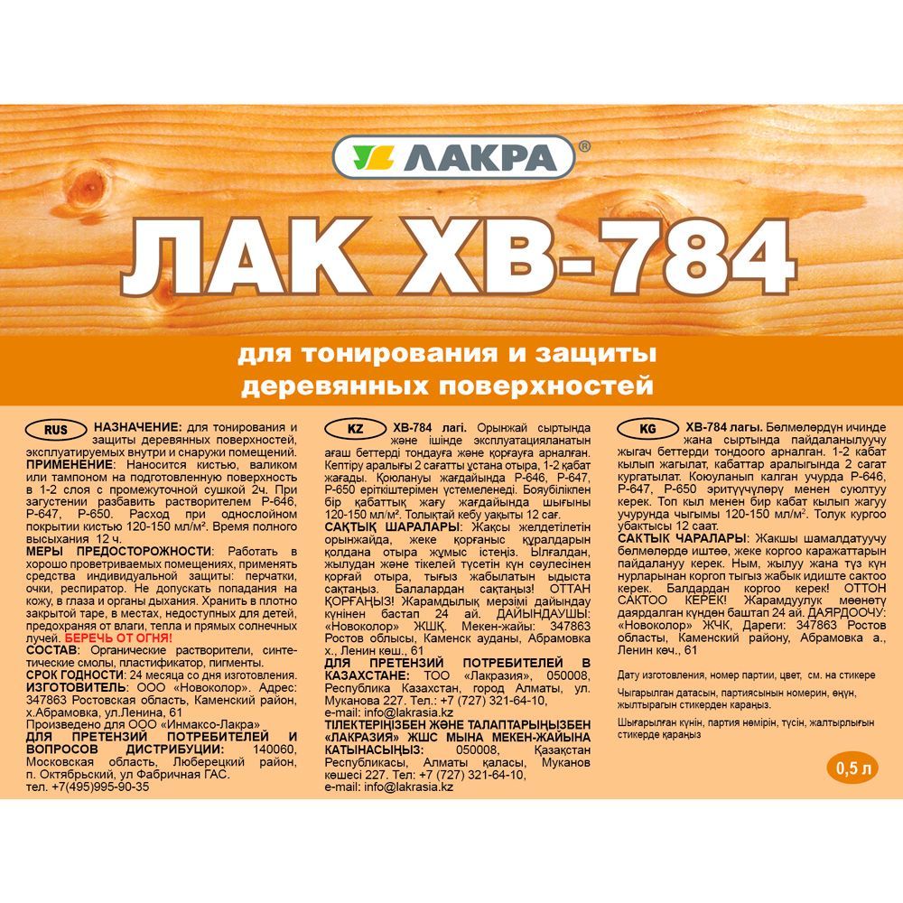 Лак для тонирования и защиты деревянных поверхностей Лакра ХВ-784 используется в качестве финишного лессирующего покрытия для конструкций внутри и снаружи помещений. Благодаря хорошей растекаемости состав идеально подходит для отделки изделий с неровной поверхностью.