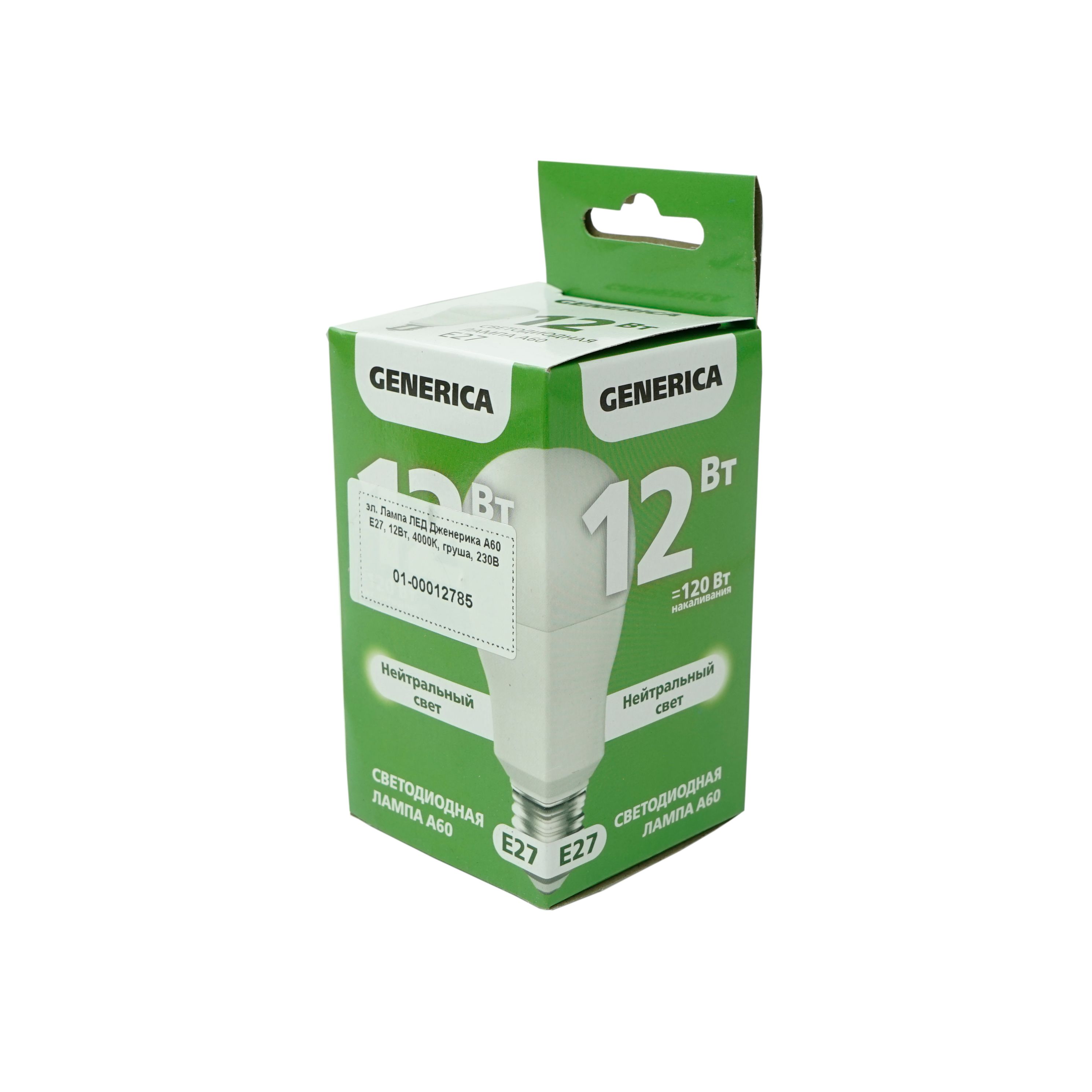 Лампа светодиодная (Generica) А60, Е27, 12Вт, 4000К, 1200лм, груша, нейтральный свет цена - купить в Барнауле, Бийске. Размеры, характеристики, фото в интернет-магазине.
