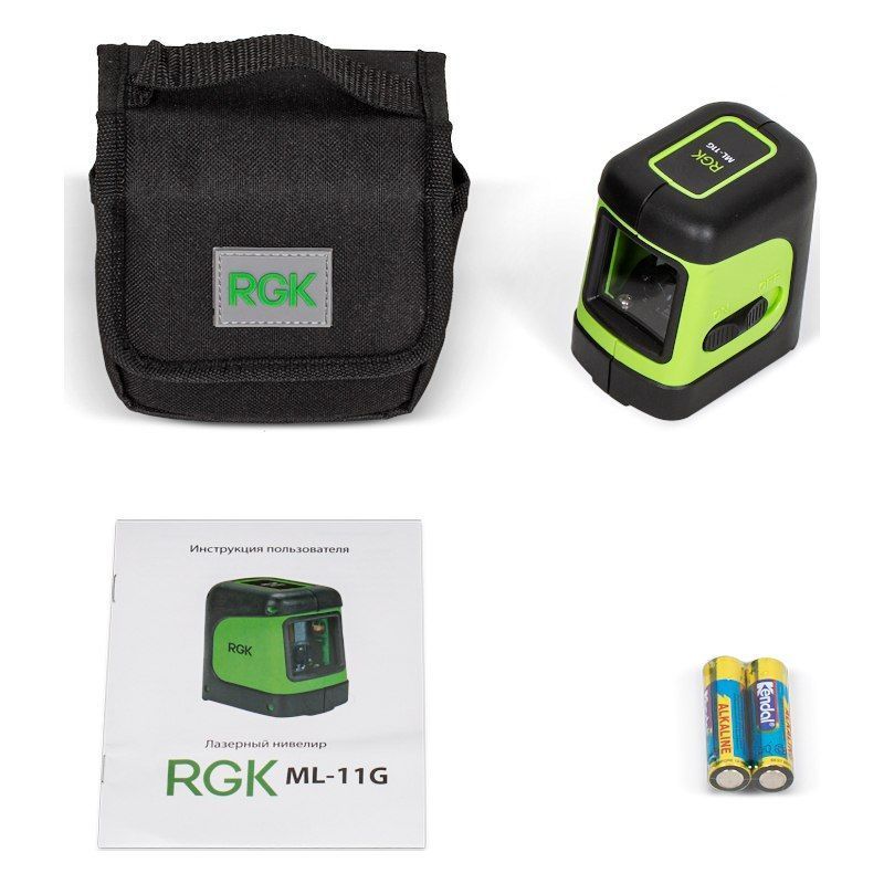 Лазерный уровень RGK ML-11G, 2 зеленых луча, дальность 10м, резьба 1/4, 2хАА цена - купить в Барнауле, Бийске. Размеры, характеристики, фото в интернет-магазине.