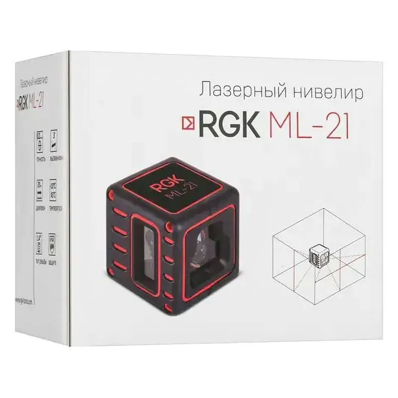 - На корпусе есть резьба 1/4 " под штатив. Установка лазерного нивелира RGK ML-21 на треногу позволит проецировать лучи на заданной высоте, поворачивать модель вокруг своей оси или менять её наклон без перестановки на другое место.
